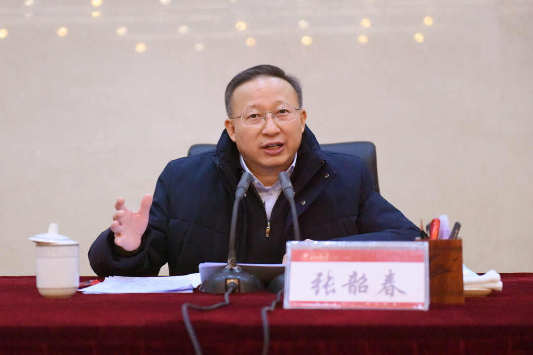 张韶春以深入学习贯彻党的十九届五中全会精神为主题,围绕新时代的新奋斗目标、新发展阶段的新机遇新挑战、新发展理念新发展格局等重点内容,系统领学了党的十九届五中全会精神要义,阐释了自治区贯彻落实党的十九届五中全会精神的发展方向和工作重点。