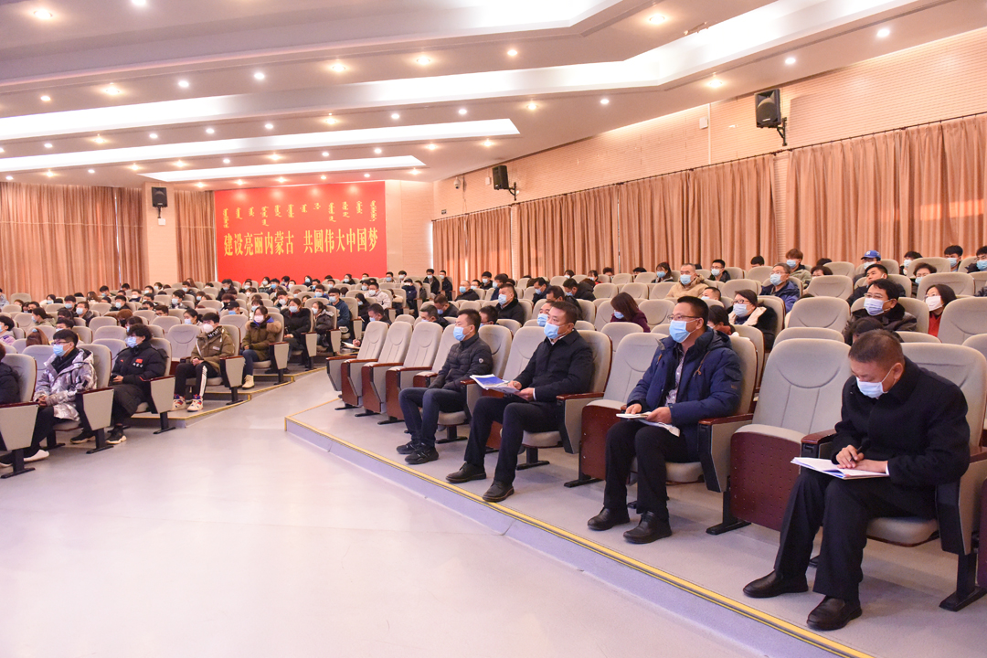 报告会在新城校区化工楼报告厅举行。校党委书记刘志彧主持。校领导姚德、栗文义、峻峰、吕晓琪、阿力坦嘎日迪、韩永全,学生代表和辅导员代表等200余人聆听报告。