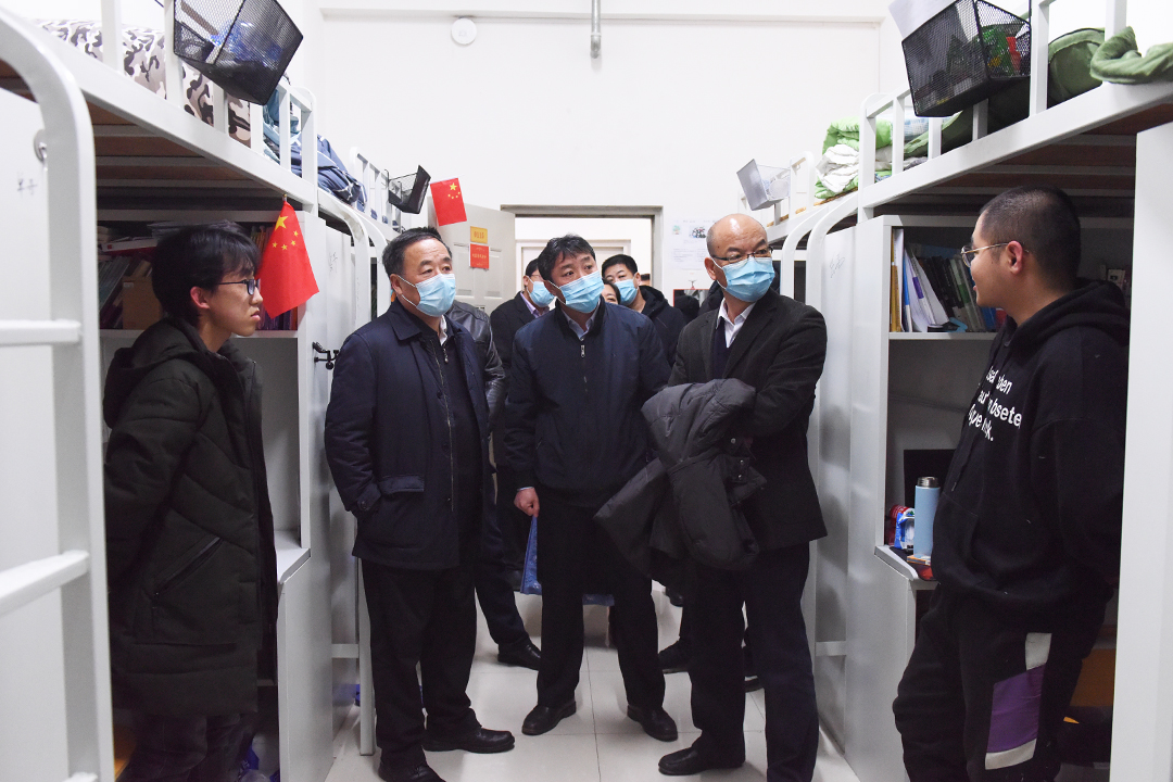 2月27日,校领导刘志彧、姚德、栗文义、阿力坦嘎日迪、韩永全分别深入新城校区和金川校区学生餐厅、学生公寓、教学楼宇等地,检查指导疫情防控及新学期开学各项工作并看望返校同学。相关职能部门负责同志随行。