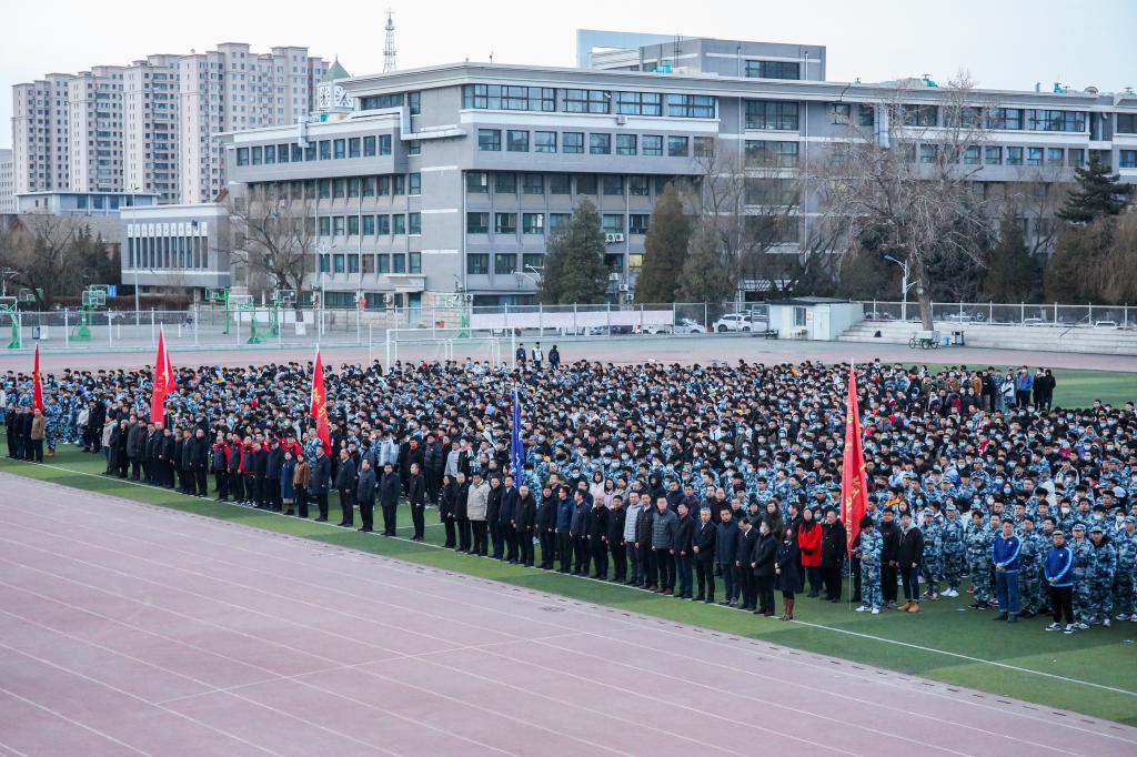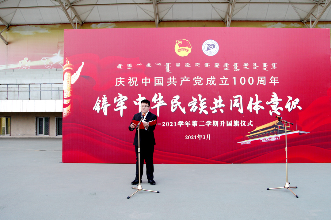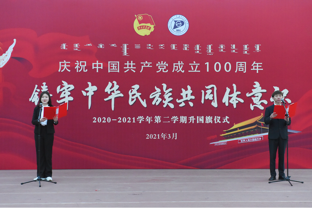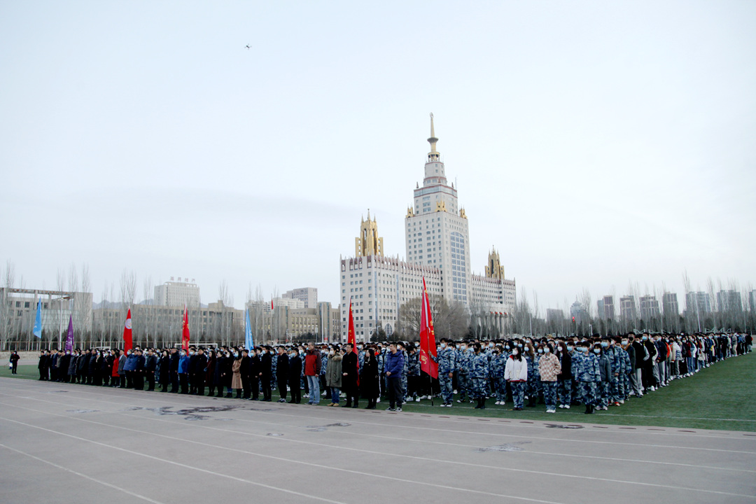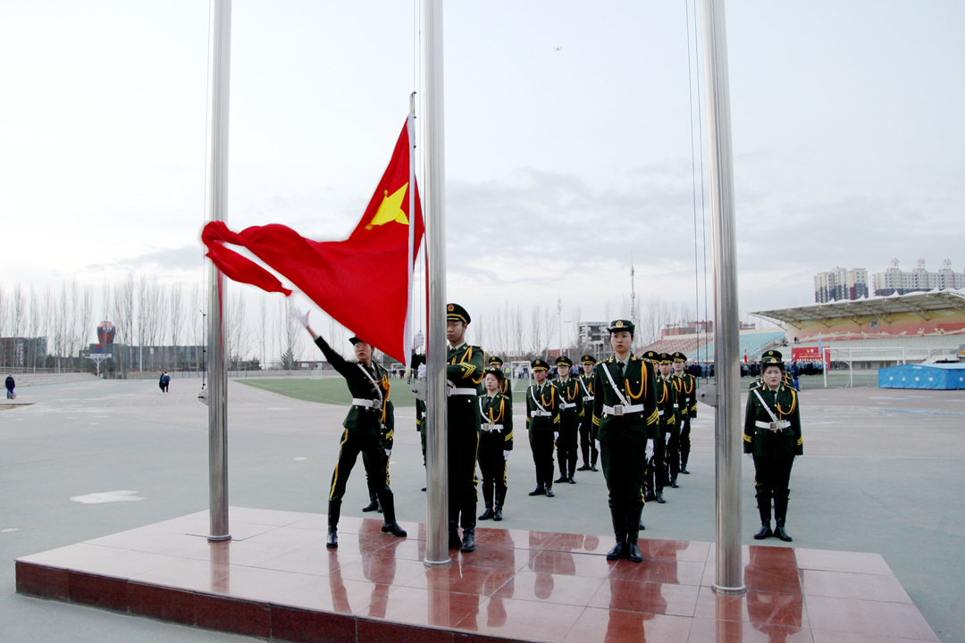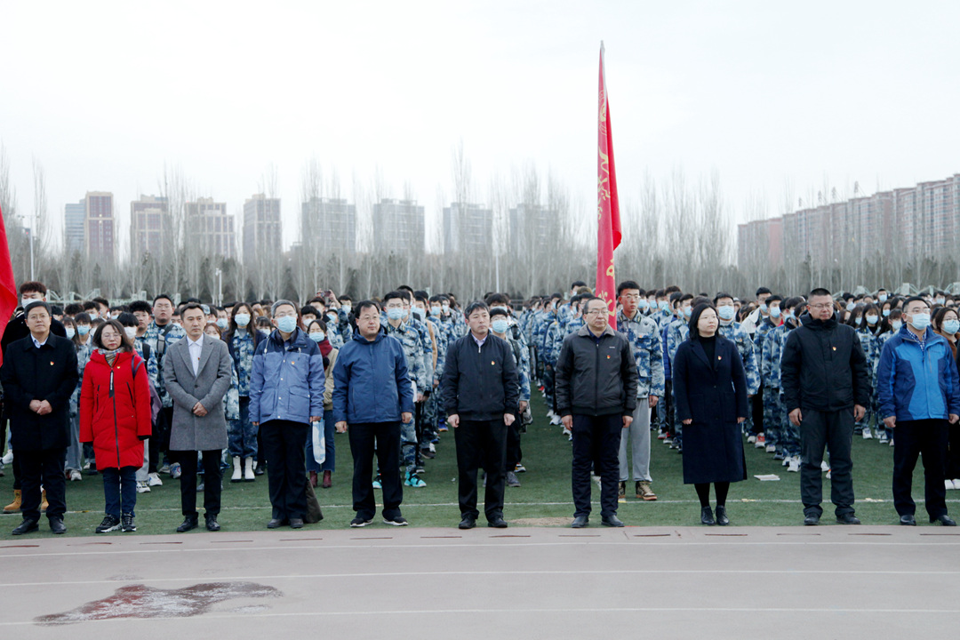 3月1日早7:00,学校在新城、金川、准格尔三校区田径运动场同时举行2021年春季学期升国旗仪式。校领导刘志彧、栗文义、阿力坦嘎日迪、韩永全,各单位、各部门副处级以上领导干部,各学院党委、机关党委、各党总支全体党支部书记,全体辅导员,2020级全体学生参加活动。