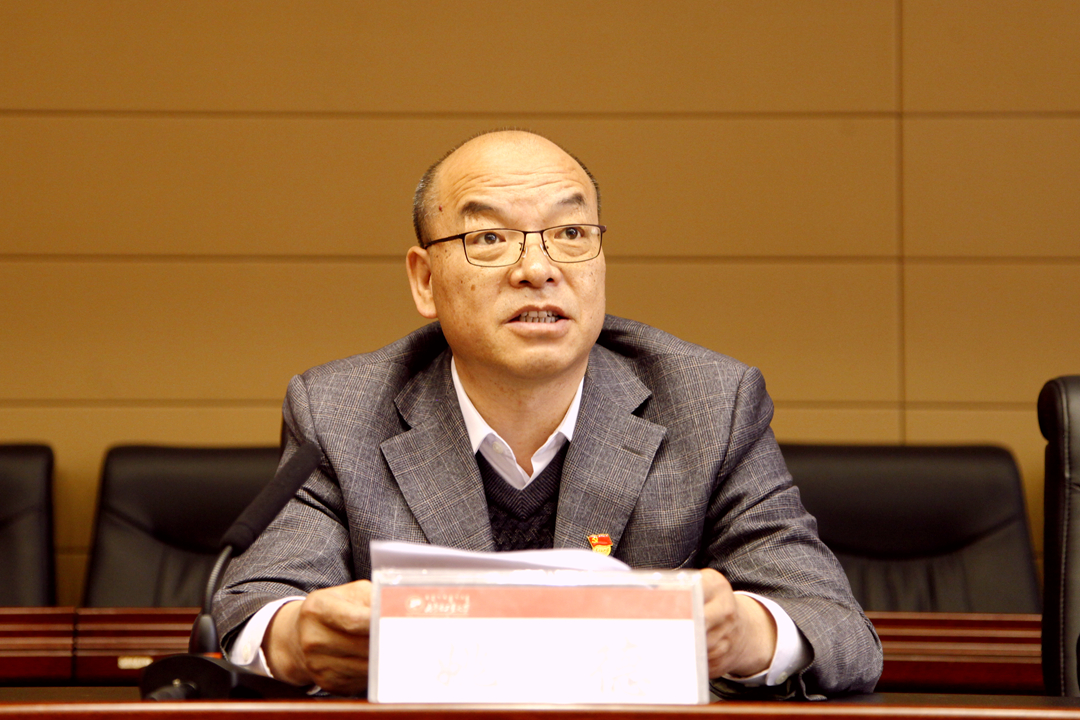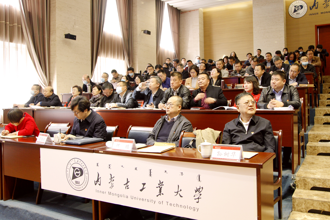 3月23日上午,我校党史学习教育“领导⼲部学党史”专题读书班正式开班,读书班以分会场形式在三个校区同步集中开展。校领导、副处级以上领导干部在新城校区明德楼第二报告厅主会场参加。全校师生党员分别在156个分会场参加。自治区第十六巡回指导组组长、鄂尔多斯市政协一级巡视员孙树华,副组长、鄂尔多斯应用技术学院党委委员、副院长何鹏,联络员、自治区党委宣传部高校企业处副处长窦鹏程,成员、内蒙古商贸职业学院教师郝瑛媛一行4人到会指导工作。校党委书记刘志彧作开班讲话。校党委副书记、校长姚德主持仪式。