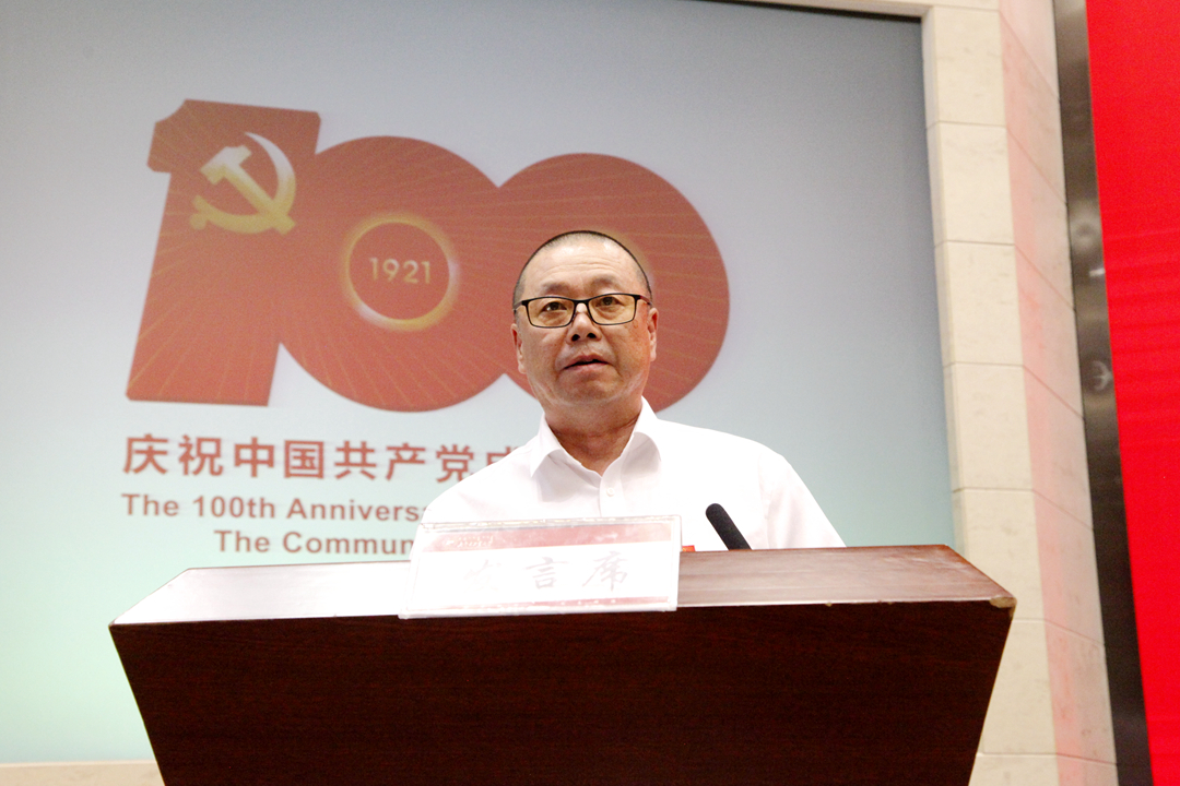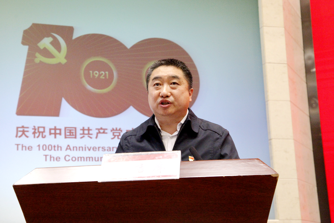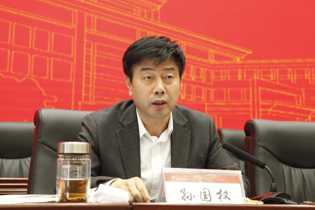 校党委书记、学校党史学习教育领导小组组长孙国权讲话。他系统总结了我校前期牢牢把握党史学习教育的目标、任务、要求,精心谋划、统筹安排,扎实有力开展各项工作取得的阶段性成果;客观分析了存在的差距和不足;并就贯彻落实好习近平总书记重要讲话精神和上级有关会议精神、进一步抓好下一步工作提出了三点意见和要求。一是,认真领会精神,紧抓重点任务,推动党史学习教育走深走实。要持续深化学思研悟,原原本本研读必读书目,实实在在领悟思想内涵,站在讲政治的高度,深化对“为什么学、明什么理、增什么信、崇什么德”四个方面的思想认识;要聚焦师生关切的“急难愁盼”问题,扎实推进“我为师生办实事”实践活动,着眼于办实事树新风、办实事开新局,切实增强师生的获得感和幸福感;要强化群众性主题宣传教育活动,有针对性地抓好“四史”教育进课堂,做好党外人士、青年学生的党史学习教育。二是,压实各级责任,细化工作举措,推动党史学习教育提质增效。要完善工作机制,充分发挥党史学习教育领导小组及办公室牵头抓总、协调各方的作用,贯通上传下达渠道,抓实抓细方案落实;要抓好关键少数,落实“两个全覆盖”的最新要求;要强化督导检查,提高督导实效;要严守各项纪律,坚持正确党史观;要总结凝练好经验好做法,形成亮点工作和特色案例,加强对外宣传。三是,坚持对标对表,强化落实成效,准备迎接中央指导组检查指导。各基层党组织要及时自查、解决、补齐存在的问题、漏洞和短板,以优异的成绩迎接建党100周年、建校70周年。