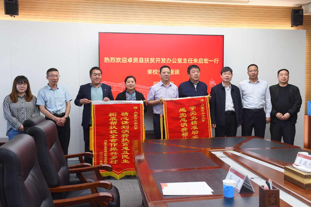 卓资县扶贫开发办一行来校调研座谈并赠送锦旗