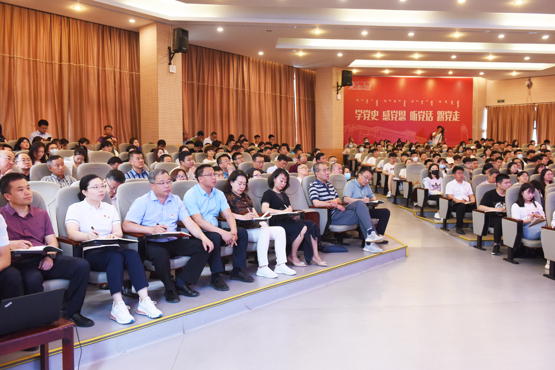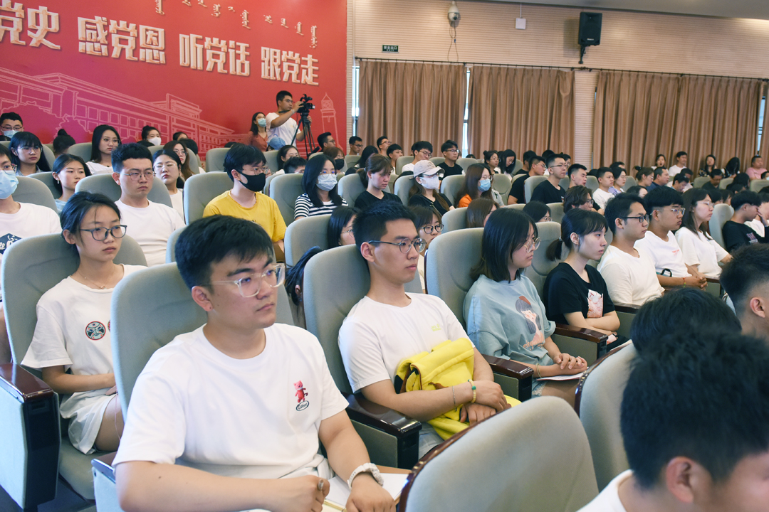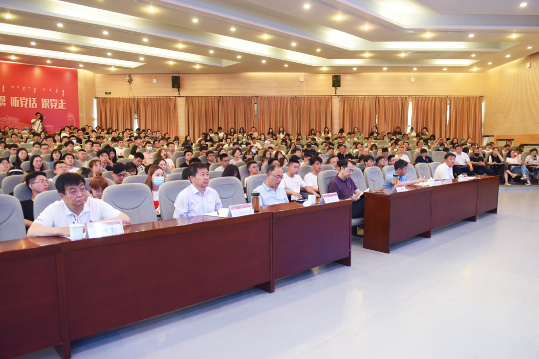 615上午,校党委书记孙国权新城校区化工报告厅作题为铭记光辉历程 感悟思想伟力 勇担时代使命的党史学习教育专题党课校党委副书记栗文义,党委委员、副校长吕晓琪,党委委员、纪委书记、监察专员阿力坦嘎日迪,党委委员、副校长韩永全,党委委员、统战部部长王世勤,副处级以上领导干部以及师生党员代表480余人聆听党课党委委员、宣传部部长王武主持党课。