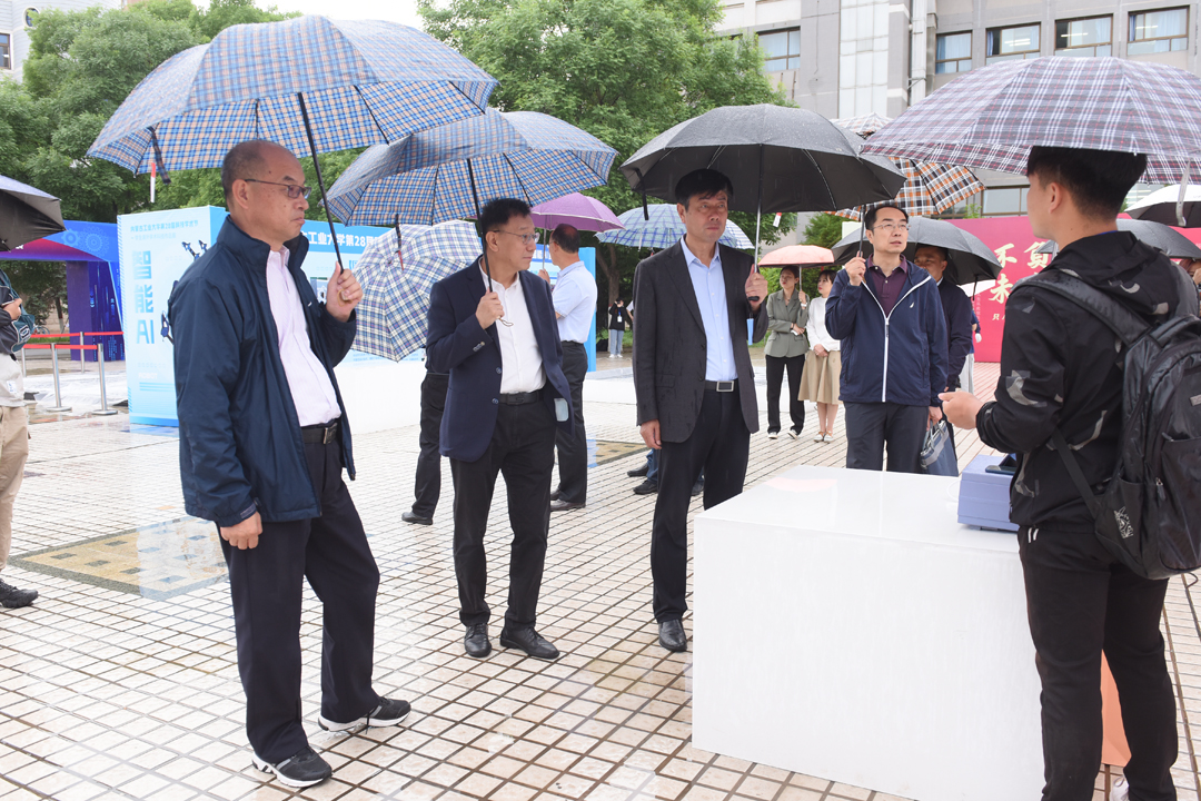 6月8日11日,我校第28届大学生科技学术节暨学生课外学术科技作品展在新城校区化工楼广场举行。校领导孙国权姚德栗文义峻峰、吕晓琪、韩永全及相关职能部门负责人出席活动逐项观看了同学们的课外学术科技作品