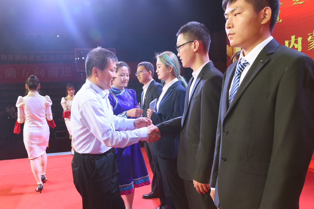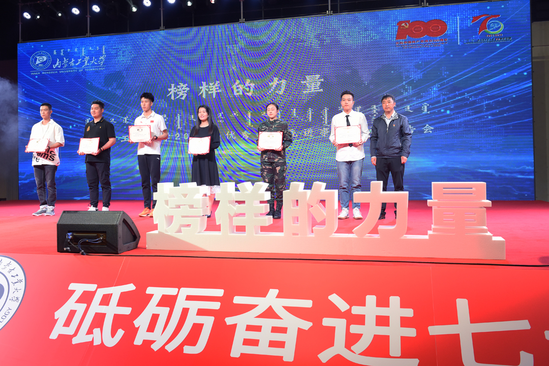 2021年是伟大的中国共产党建党100周年,是学校建校70周年,为充分展示我校青年学生紧跟时代、砥砺前行,责任担当、奋发有为的精神风貌,时刻牢记习近平总书记对新时代青年提出的殷切希望和谆谆教诲,积极引导我校青年学生以实际行动更加坚定“四个自信”6月16日,内蒙古工业大学第二届乌兰夫奖学金颁奖仪式暨“榜样的力量”2021年度优秀学生先进事迹巡讲报告会在新城校区卓越文体馆举行。自治区人大常委会民族侨务外事委员会原副主任、乌兰夫基金会理事云晓明我校纪委书记、监察专员阿力坦嘎日迪,副校长韩永全相关职能处室负责人辅导员以及3000余名学生共同聆听报告。累计2.23余万名学生线上同步观看了现场直播。