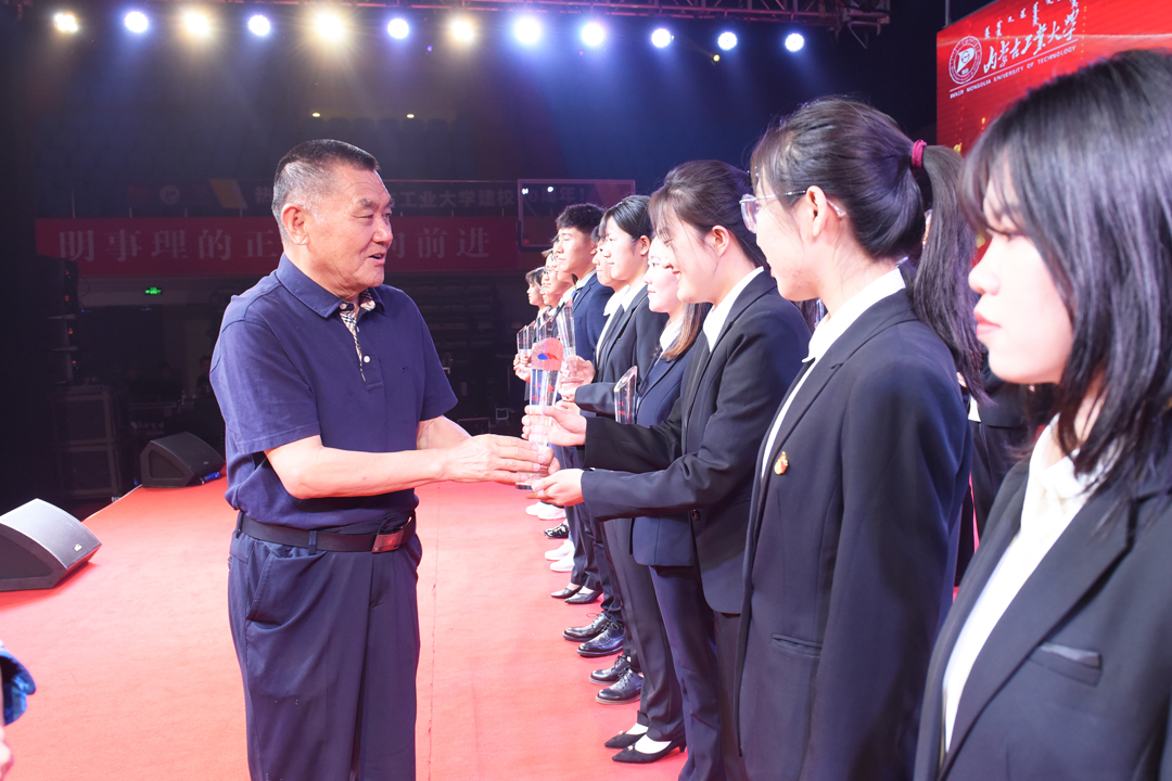 颁奖仪式上,云晓明、阿力坦嘎日迪为30名获得内蒙古工业大学第二届乌兰夫奖学金同学颁发奖杯。宣讲报告会上,韩永全为2021年6位优秀学生颁发宣讲员聘书。