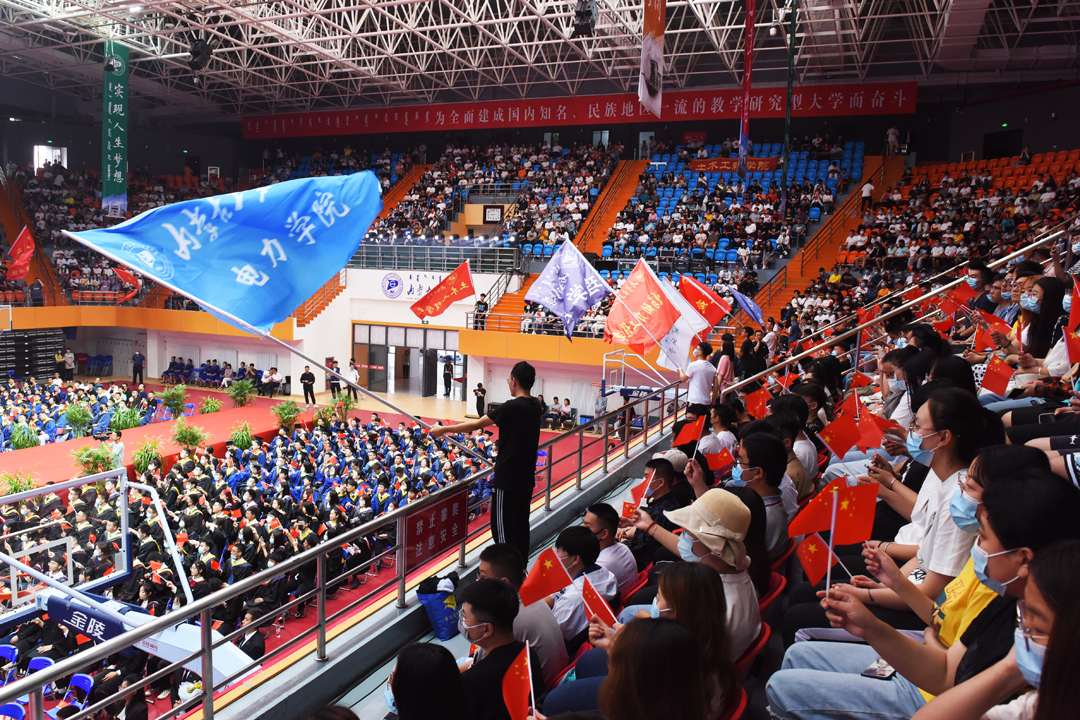 这是2021届毕业生在校期间的最后一次大型聚会。师生惜别,互道祝福;同窗挥手,告别校园。学校收集了同学们入学至今的影像和图片,制作成毕业主题短视频在大屏幕上播放。毕业生代表、“梦之帆”合唱团的同学们还现场表演了快闪《强国一代有我在》、无伴奏合唱《凤凰花开的路口》,引人无限感慨,不少同学眼含泪水,跟着音乐放声歌唱,以此为美好的大学时光画上圆满句号。