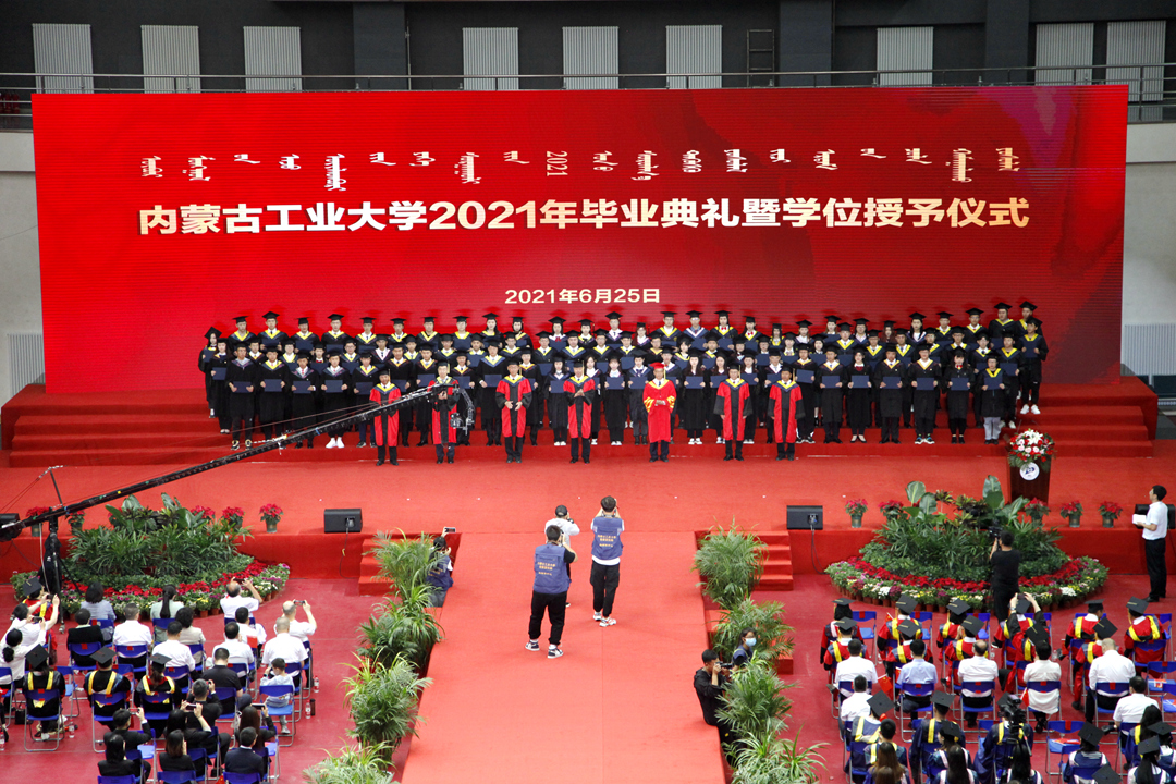 6月25日上午,内蒙古工业大学2021年毕业典礼暨学位授予仪式在新城校区卓越体育馆隆重举行。全体校领导、党委委员出席活动。副校长韩永全主持毕业典礼。校党委副书记栗文义主持学位授予仪式。3000余名2021届毕业生以及相关职能部门负责人、各学院党政负责人、教师代表、学生家长代表参加毕业典礼暨学位授予仪式。