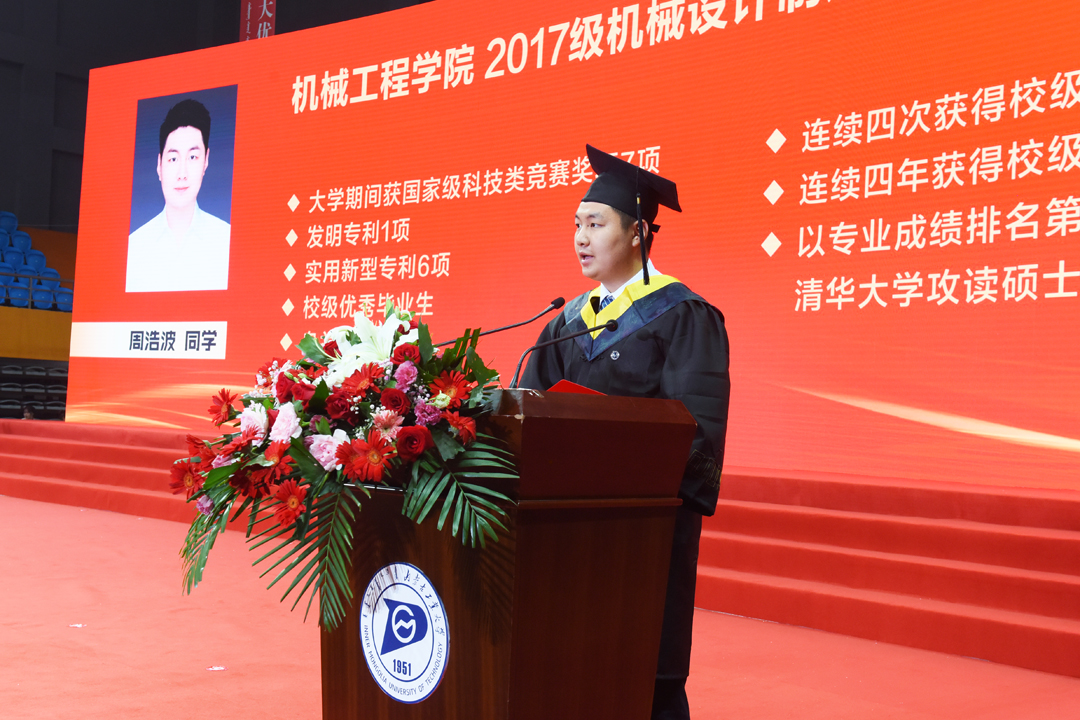 校长姚德代表学校向圆满完成学业、即将踏上人生新征程的6373名毕业生表示最热烈的祝贺,向一路培育、帮助、陪伴毕业生成长的老师、同学及亲友表示最崇高的敬意。他细数同学们在这片校园里挥洒的青春、取得的成绩;勉励大家成长在这个伟大的时代,就要融入这个时代,更要奋斗于这个时代;并深情寄语同学们:要厚植爱国情怀。无论身在何处,无论从事何种职业,都要秉持家国情怀,将个人的前途命运与国家的前途命运紧密相连,在实现中华民族伟大复兴的新征程中实现人生价值、升华人生境界,将爱国之情、报国之志转化为奉献祖国、奉献人民的不竭力量。要练就过硬本领。多读有字之书,广泛积累,增长才干,锤炼品格,以真才实学服务于社会、服务于人民。多读无字之书,从实践中锻炼毅力,增长勇气,积极面对人生的各种挑战。要勇于担当作为。作为建设新时代的主力军,要牢记对祖国、对人民、对中华民族的时代责任,把个人奋斗同国家的前途和民族的命运有机结合,让青春的追求同社会的需要和人民的利益紧密相连,勇立时代潮头,争做时代先锋。