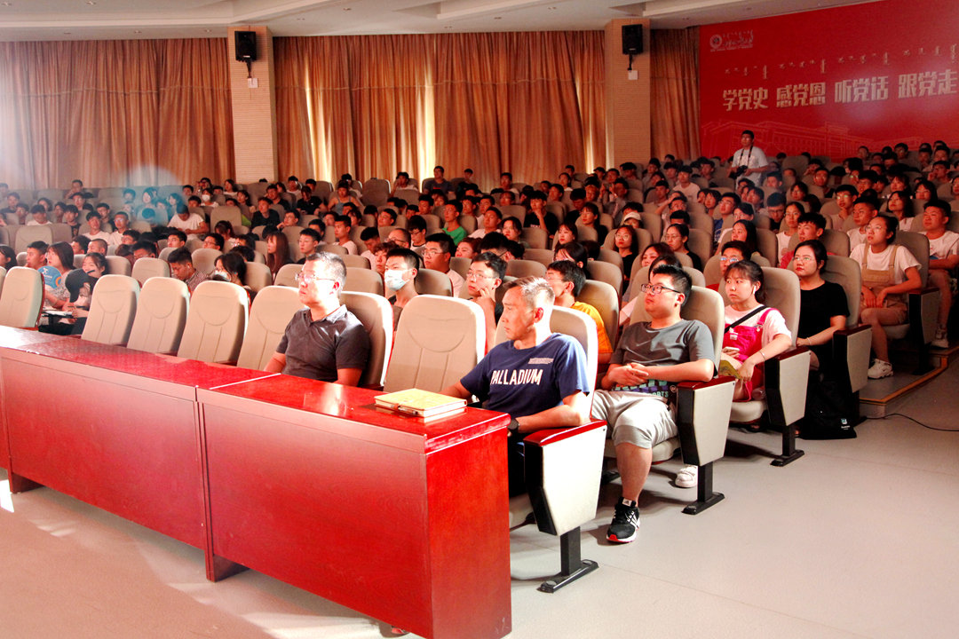 为推进党史学习教育在高校走深走实走心,进一步引导广大青年肩负历史使命、坚定前进信心,立大志、明大德、成大才、担大任,努力成为堪当民族复兴重任的时代新人,自治区党委宣传部在全区高校开展“演绎红色故事 传承红色基因”——党史学习教育“送文化”进校园活动。6月28日下午,由自治区党委宣传部组织、内蒙古艺术剧院排演的交响诗画《我愿以身许国》在我校化工楼报告厅上演,400余名学生党员、入党积极分子观看演出。