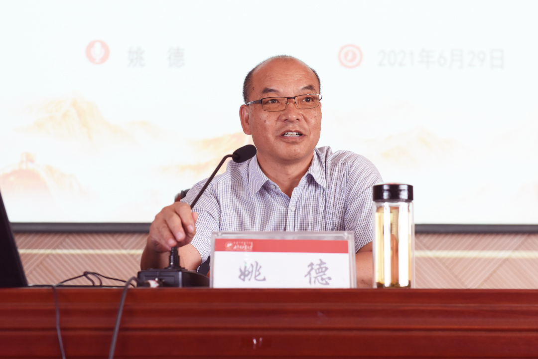 为高标准高质量开展党史学习教育,推动学校各项工作落地落实,根据学校相关工作安排,6月29日下午,校长姚德在金川校区电力大楼十楼第一报告厅作党史学习教育专题辅导党课。金川校区各学院副处级以上领导干部,各职能部门、教辅单位教师党员代表,金川校区各学院党支部书记、师生党员代表等近200人聆听党课。校党委委员、宣传部部长王武主持党课。
