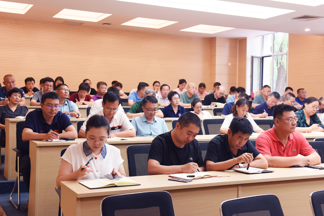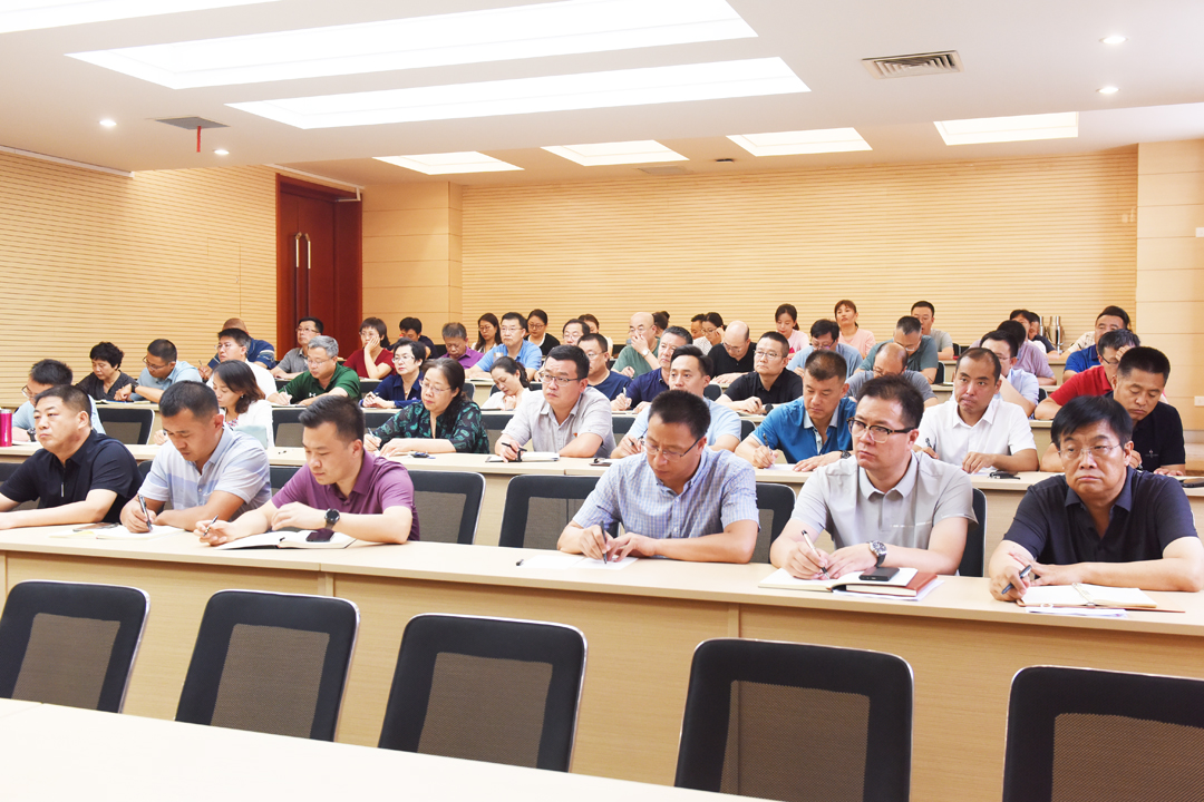 7月23日下午,学校在新城校区明德楼第三报告厅召开党史学习教育推进会。校党委书记、学校党史学习教育领导小组组长孙国权,校党委副书记、学校党史学习教育领导小组副组长栗文义,校纪委书记、学校党史学习教育领导小组副组长阿力坦嘎日迪出席会议。机关各职能部门负责人、各学院党委书记、学校党史学习教育领导小组成员等60余人出席会议。校党委委员、宣传部部长王武主持会议。