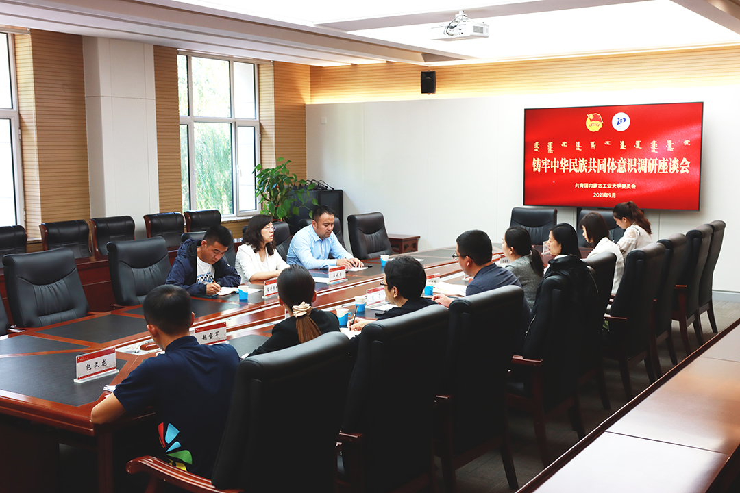 9月8下午内蒙古自治区团委副书记匡晓蕾一行到我校调研铸牢中华民族共同体意识教育工作。校团委全体人员学院团委辅导员、学生干部代表参加座谈会。会议由校团委书记金燕飞主持。