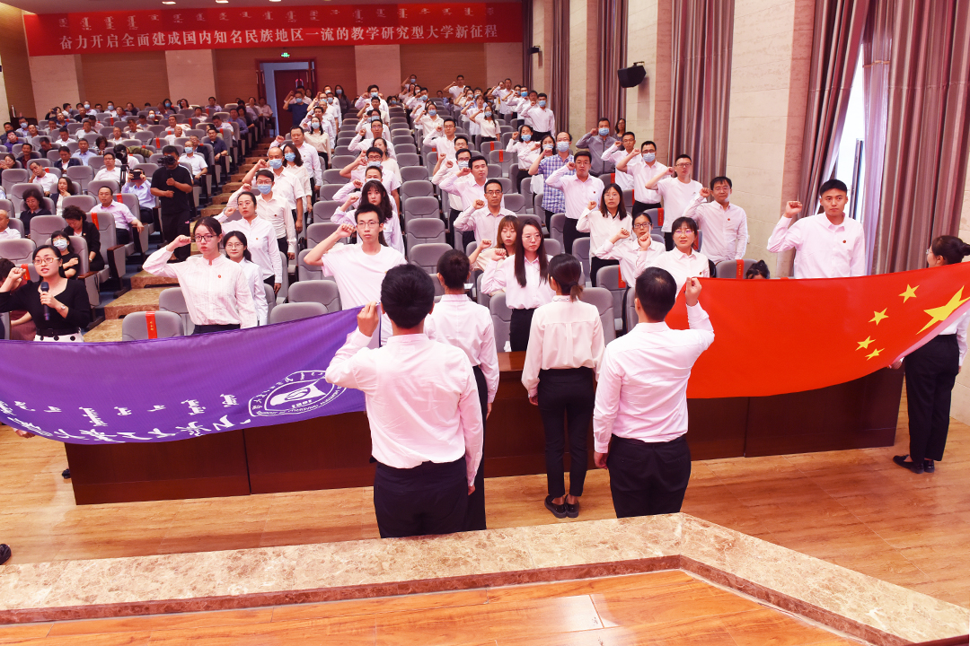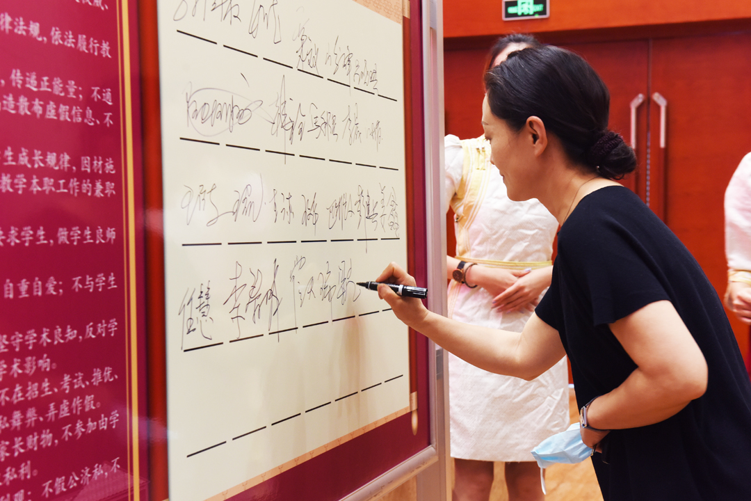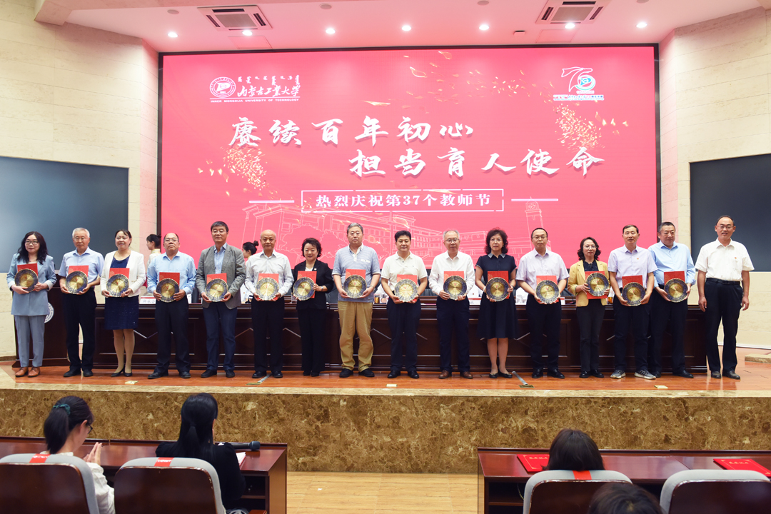 庆祝大会紧扣“赓续百年初心,担当育人使命”主题,分为“表彰、荣休、传承、学习、承诺”5个部分,表彰了在教学创新中做出优异成绩的获奖教师,为从教满30年的教师代表和2021年聘任的教授颁发了荣誉证书和聘书,举行了2020-2021年退休教师荣休仪式和新教师入职宣誓仪式,共同学习了国家新时代师德师风建设的有关规定,并举行了全体教师签订《师德承诺书》的启动仪式。