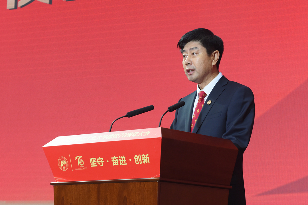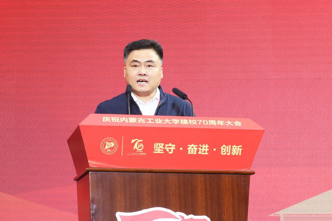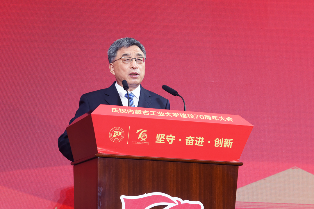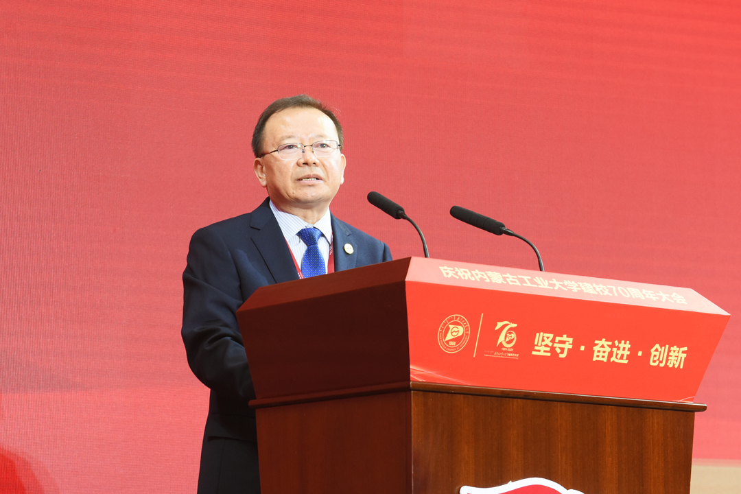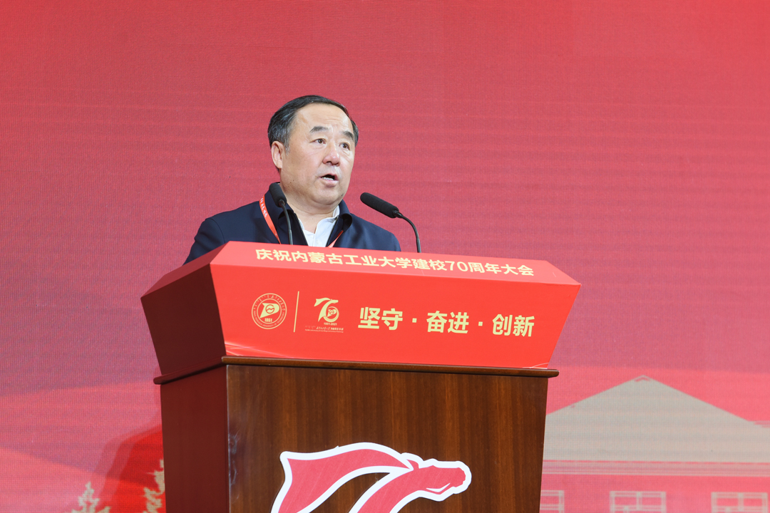 林少春代表自治区党委和政府对内蒙古工业大学建校70周年表示热烈祝贺,对学校建校70年来取得的成就给予高度评价。他指出,内蒙古工业大学是自治区成立最早的高校之一,是自治区重要的高级工程技术人才培养基地、工程技术应用研究与开发基地。近年来,学校坚持以习近平新时代中国特色社会主义思想为指导,不断深化教育教学改革,积极推进高质量内涵式发展,聚焦自治区经济社会发展重大需求和关键技术,打造优势特色学科,办学质量不断提高,办学实力不断增强,社会声誉和影响力不断扩大,已经成为自治区经济社会发展中的一支重要力量。他强调,工业大学要以建校70周年为新起点,坚持党的领导,坚持社会主义办学方向,坚持马克思主义指导地位,深入学习贯彻习近平新时代中国特色社会主义思想,全面贯彻党的教育方针,坚守为党育人、为国育才的初心使命,把培养德智体美劳全面发展的社会主义建设者和接班人作为根本任务,把立德树人成效作为检验学校一切工作的根本标准,办好中国特色社会主义高校。要聚焦国家和自治区发展所需,立足新发展阶段,全力服务自治区建设“两个屏障”“两个基地”“一个桥头堡”、走好以生态优先绿色发展为导向的高质量发展新路子。进一步明确办学定位,优化学科布局,积极建设更高质量的学科体系、教学体系、教材体系、科研体系、治理体系,抓好基础研究,加强国际交流合作,推进产学研协同创新,抓牢思想政治工作“生命线”,矢志建设高水平大学。