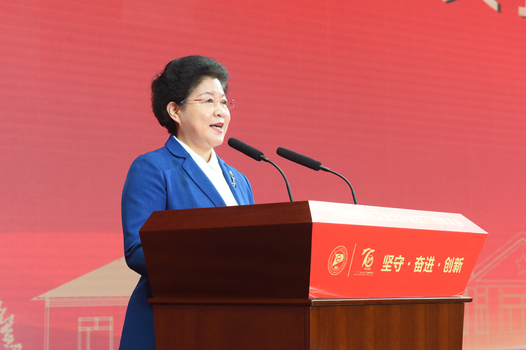 黄雅丽在致辞中指出,内蒙古工业大学作为自治区办学历史最悠久的高校之一,是自治区高等工程教育的开创者和领军者,是自治区“双一流”建设的重点高校之一。建校70年来在人才培养、科学研究、学科建设、社会服务等方面取得了累累硕果,为国家和自治区经济社会发展作出了重要贡献。希望学校聚焦高质量发展主题,紧紧围绕自治区“两个屏障”“两个基地”和“一个桥头堡”战略定位,努力打造一流队伍、产出一流成果、搭建一流平台、建设一流学科、培养一流人才,努力当好服务区域经济建设的先锋队、实施“科技兴蒙”行动的主力军、推进“新工科”建设的排头兵。