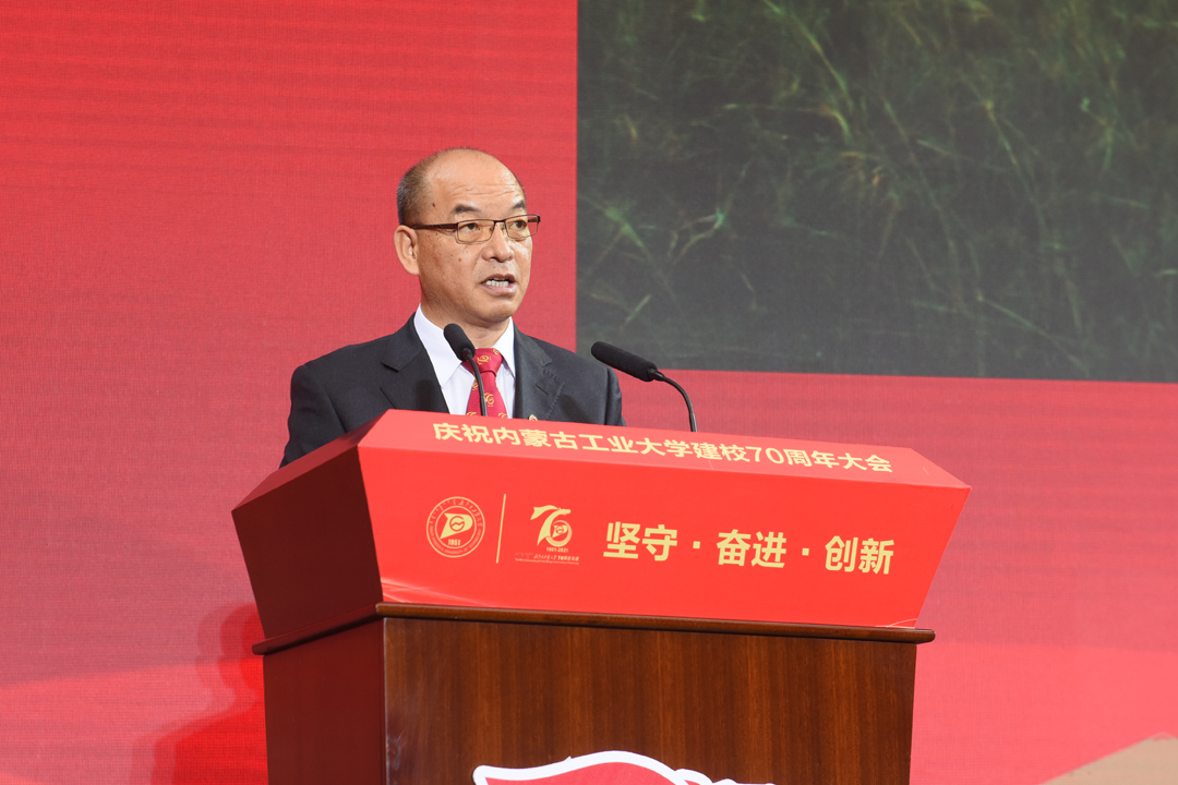 内蒙古工业大学党委书记孙国权主持大会,代表学校全体师生向出席70周年校庆活动的各级领导、各位来宾、来自全国各地的广大校友表示热烈的欢迎和诚挚的问候,并致以崇高的敬意和衷心的感谢!