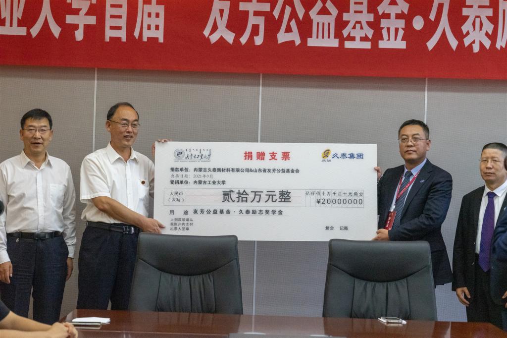 9月16日下午,我校在新城校区明德楼204会议室举行首届“友芳公益基金·久泰励志奖学金”颁奖仪式。“友芳公益基金·久泰励志奖学金”是我校与久泰集团签订的战略性产学研合作框架协议的一部分,今年共有50名学生获奖。