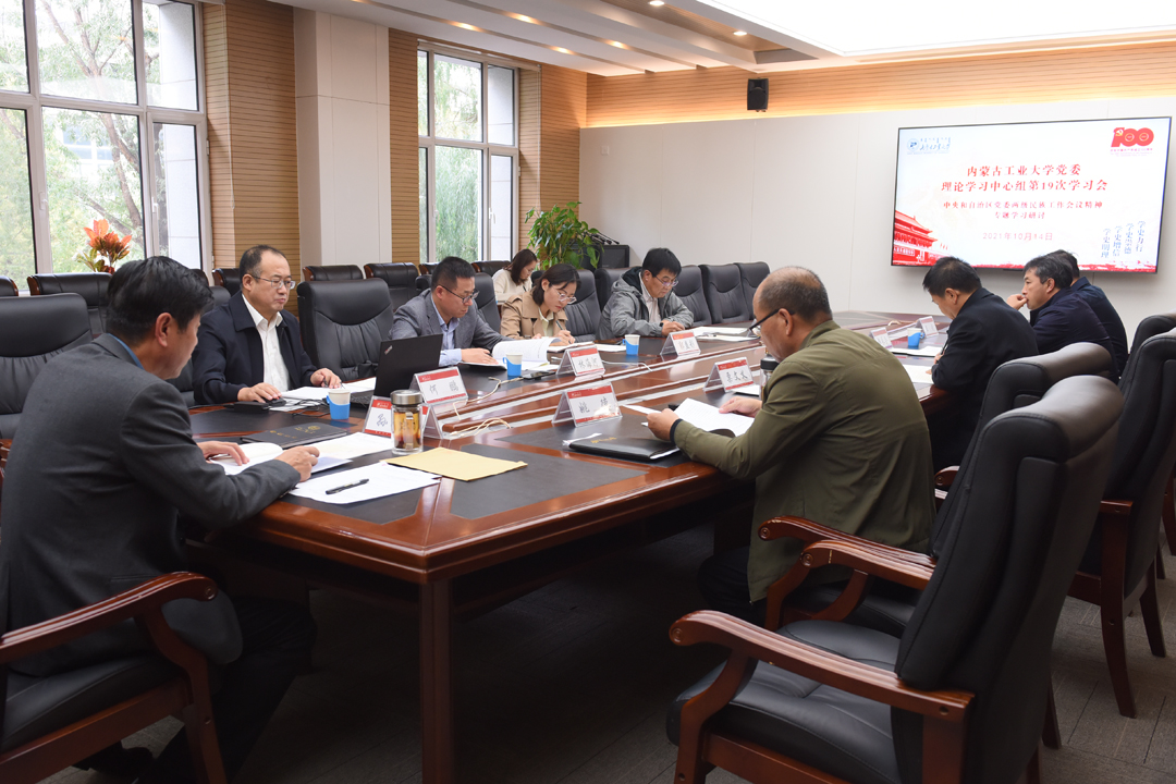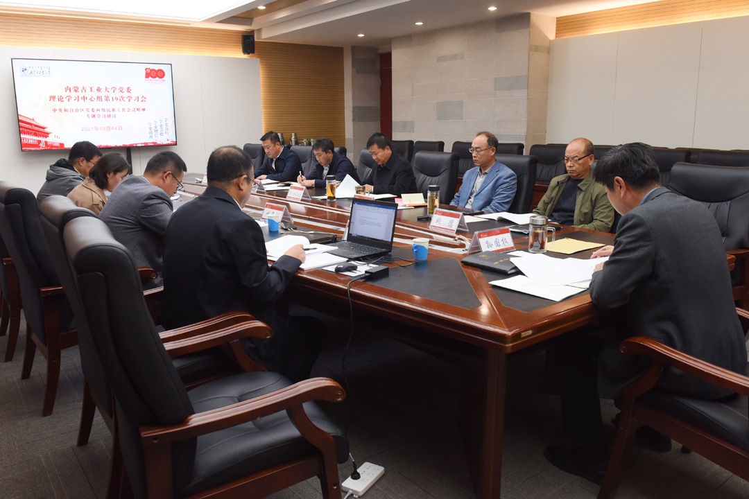 10月14日下午,校党委理论学习中心组在新城校区明德楼205会议室召开第十九次学习会,专题研讨中央和自治区党委两级民族工作会议精神。校党委书记孙国权主持会议。自治区党委党史学习教育第十六巡回指导组副组长何鹏,成员林海河、郭益彤到会指导。校党委理论学习中心组成员参加会议。