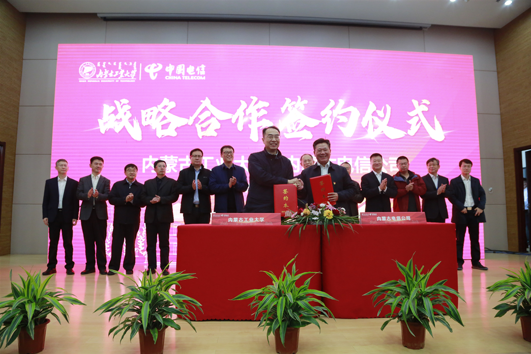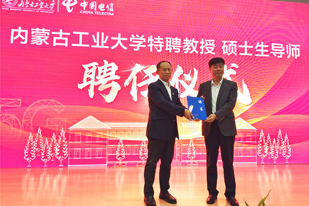 会上,吕晓琪代表学校与中国电信内蒙古分公司党委委员、副总经理武权签署了战略合作框架协议。根据协议,双方将在重点领域技术攻关、5G+ICT发展战略研究、信息化建设及基础网络建设、智慧教育实验室建设、教育支援项目、大学生就业及创新创业平台等方面开展全面务实合作。随后,孙国权代表学校向谷红勋颁发了特聘教授、硕士研究生导师聘书。