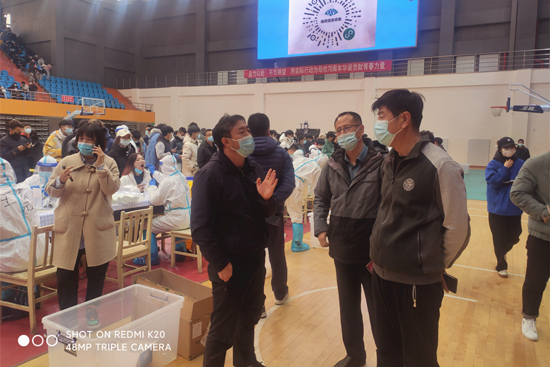 检测期间,校党委书记孙国权,校党委副书记、校长姚德,校党委委员、纪委书记、监察专员阿力坦嘎日迪校党委委员、副校长韩永全到现场指导工作,了解工作进展,询问工作中遇到的问题和困难,并强调各相关单位、部门要切实维护好现场秩序,从严从细从实做好核酸检测工作,同时要进一步开展排查、流调、管控等工作,持续加大严防严控力度,全力阻断疫情传播风险,筑牢校园免疫安全屏障,确保师生安全
