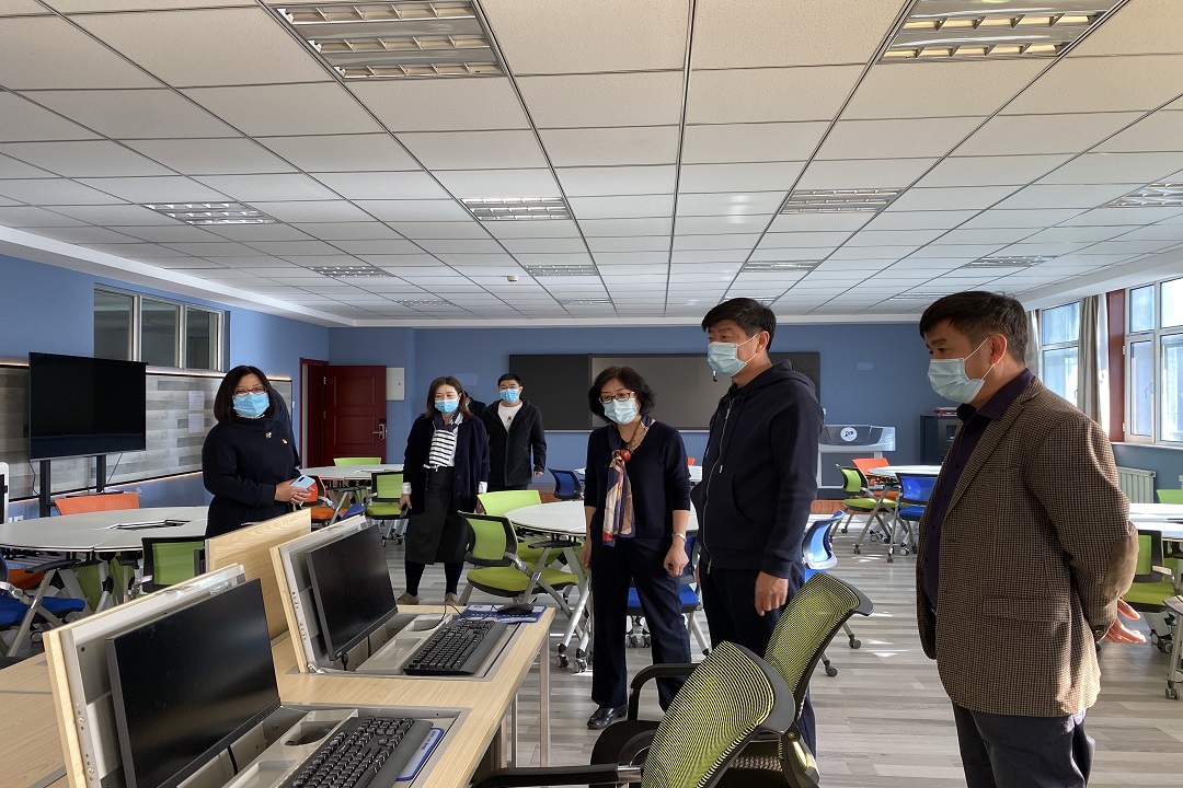 会前,孙国权参观了外国语学院的语音实训实验室、图书资料室、录播课教室。