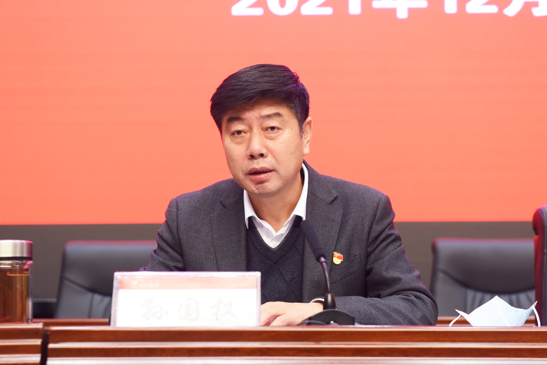 校党委书记、党史学习教育领导小组组长孙国权讲话。他指出,十九届六中全会全面总结了党的百年奋斗重大成就和历史经验,是郑重的战略性决策,体现了我们党重视和善于运用历史规律的高度政治自觉,体现了我们党牢记初心使命、继往开来的自信担当。他从全会的历史意义、政治意义、理论意义、实践意义4个方面,全面总结了党的十九届六中全会的重大意义,要求全校各级领导干部要统筹做好学习贯彻工作安排,切实增强责任感、使命感,把学习贯彻党的十九届六中全会精神作为当前和今后一个时期的重大政治任务,迅速掀起学习宣传贯彻全会精神的热潮。