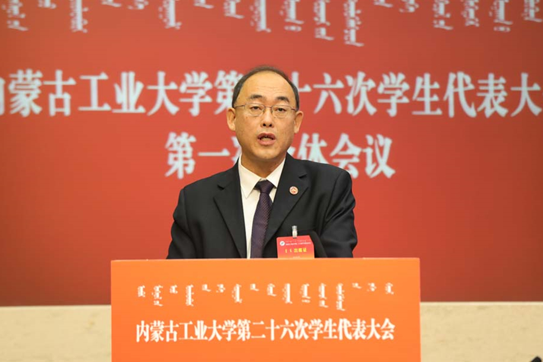 12月11日,我校第二十六次学生代表大会隆重召开。本次会议采取线上线下相结合、分会场直播的方式进行。校党委书记孙国权,校党委副书记栗文义,校纪委书记、监察专员阿力坦嘎日迪,校党委委员、副校长韩永全以及相关部门负责人出席开幕式。部分学院党委书记、学工副院长、团委负责人列席大会。开幕式由大会主席团成员魏湘琦同学主持。