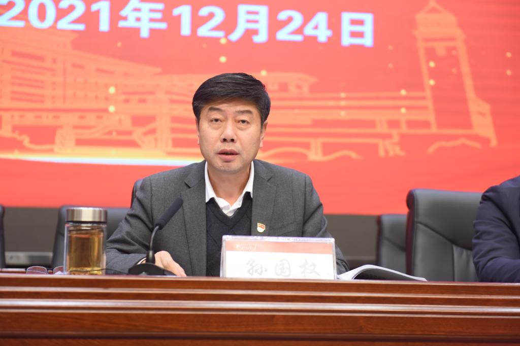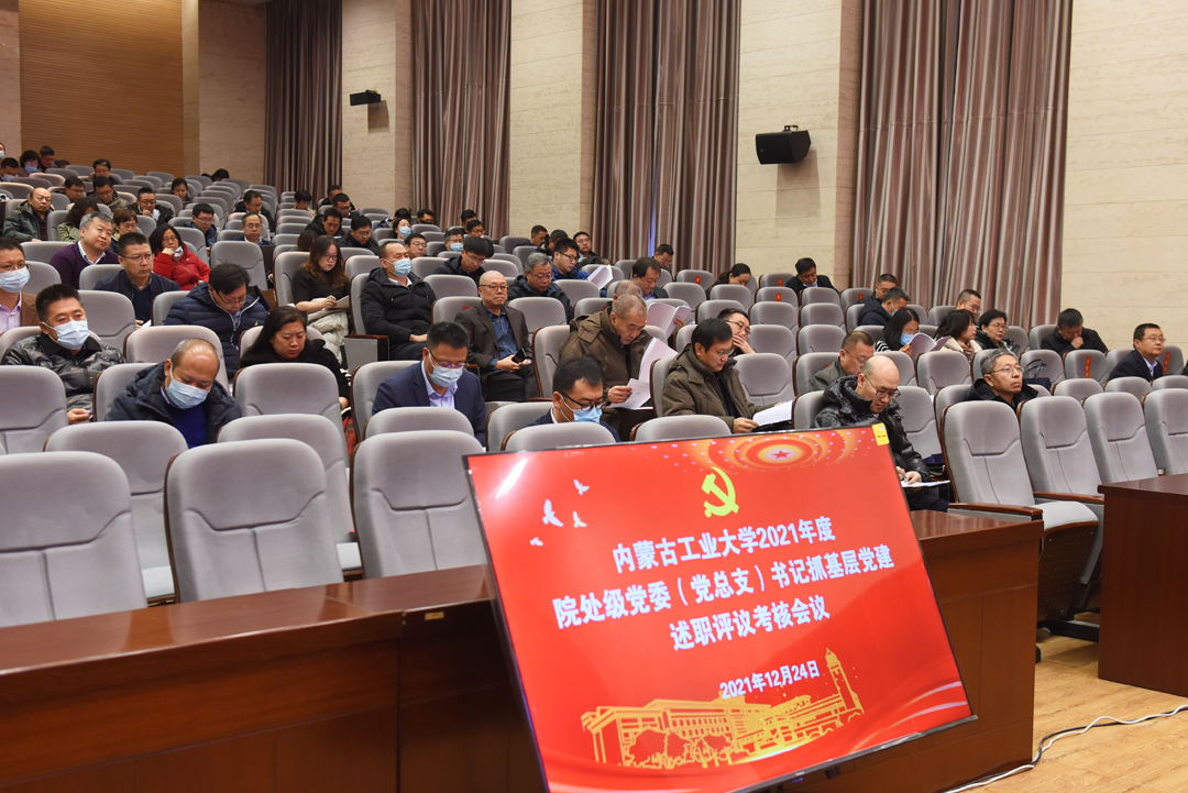 12月24日,学校在新城校区明德楼第一报告厅召开2021年度院处级党委(党总支)书记抓基层党建述职评议考核会议。全体校党委班子成员、副处级以上领导干部、各学院党委专职组织员参加会议。校党委书记孙国权作述职点评和总结讲话,校党委副书记、校长姚德主持会议。