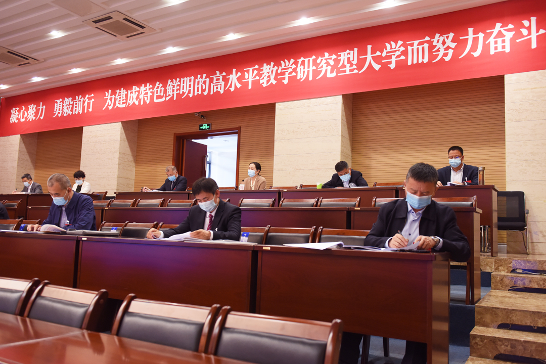 4月24日,我校九届三次教职工代表大会暨十二届三次工会会员代表大会召开。根据疫情防控工作要求,会议以“线上+线下”“主会场+分会场”的形式召开。全体校领导、大会主席团成员、离退休老同志代表、党外人士代表等在新城校区明德楼第二报告厅主会场参会。正式代表、列席代表分别在八个分会场参加会议。校党委书记孙国权作重要讲话。校党委副书记、校长姚德作工作报告。校党委副书记栗文义主持会议。