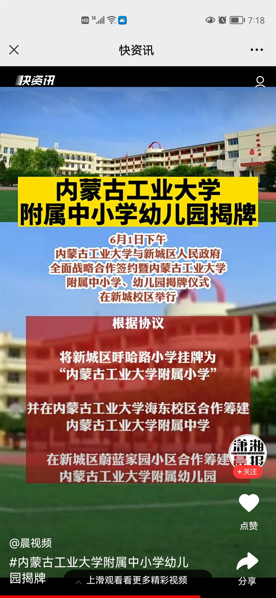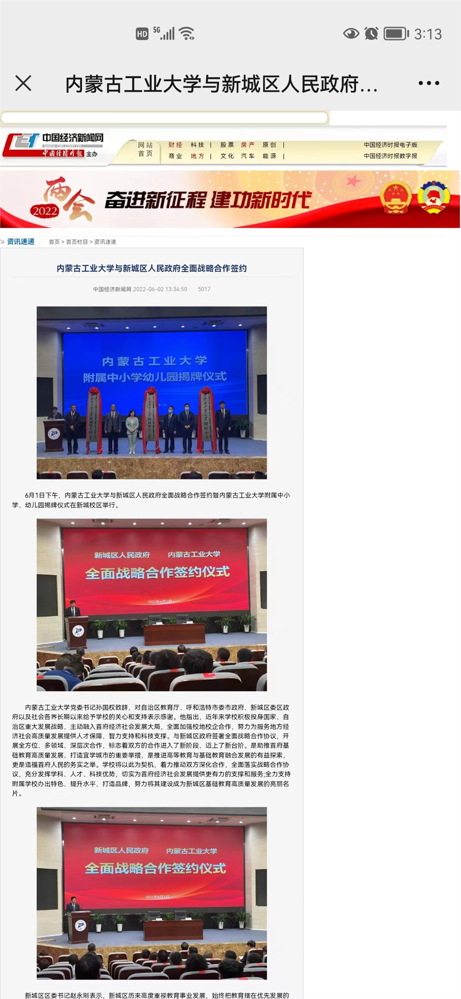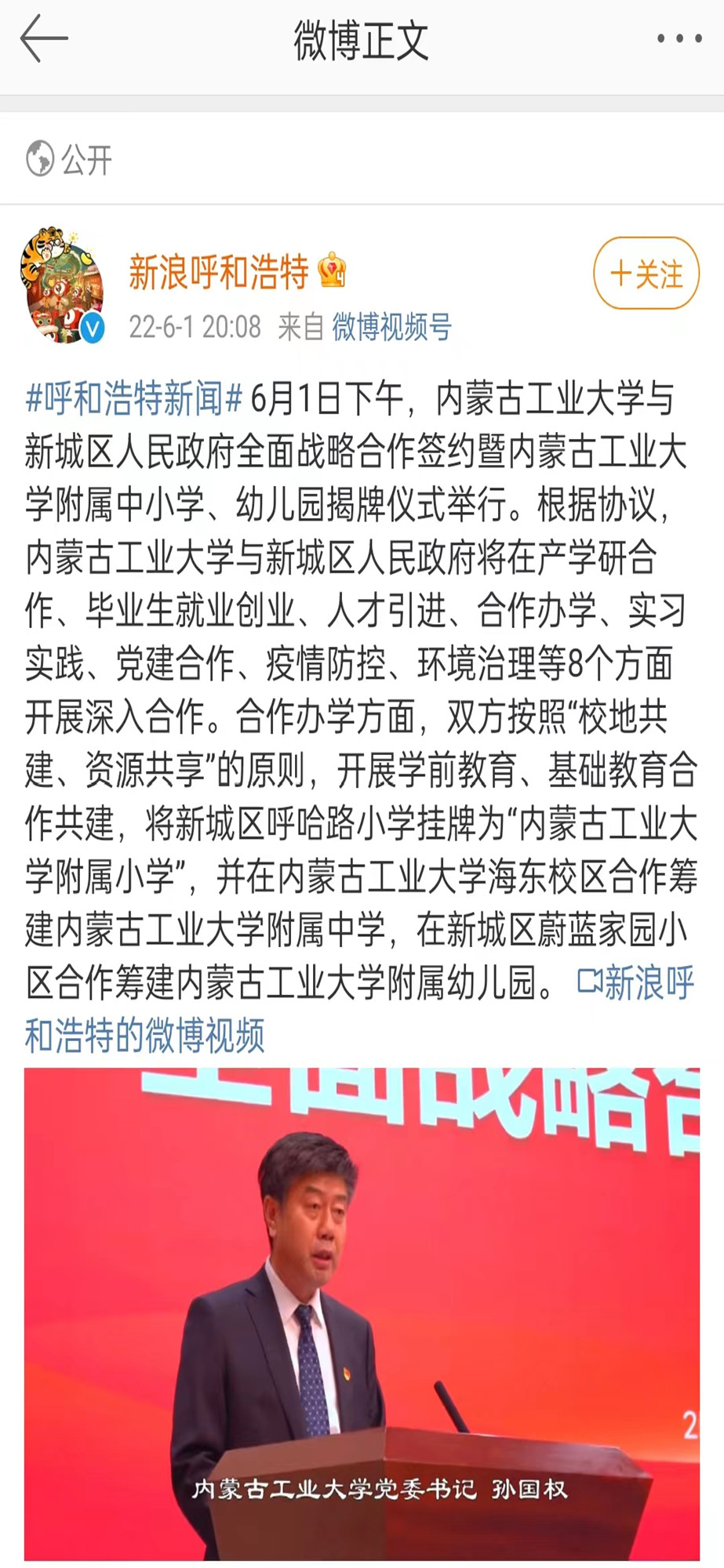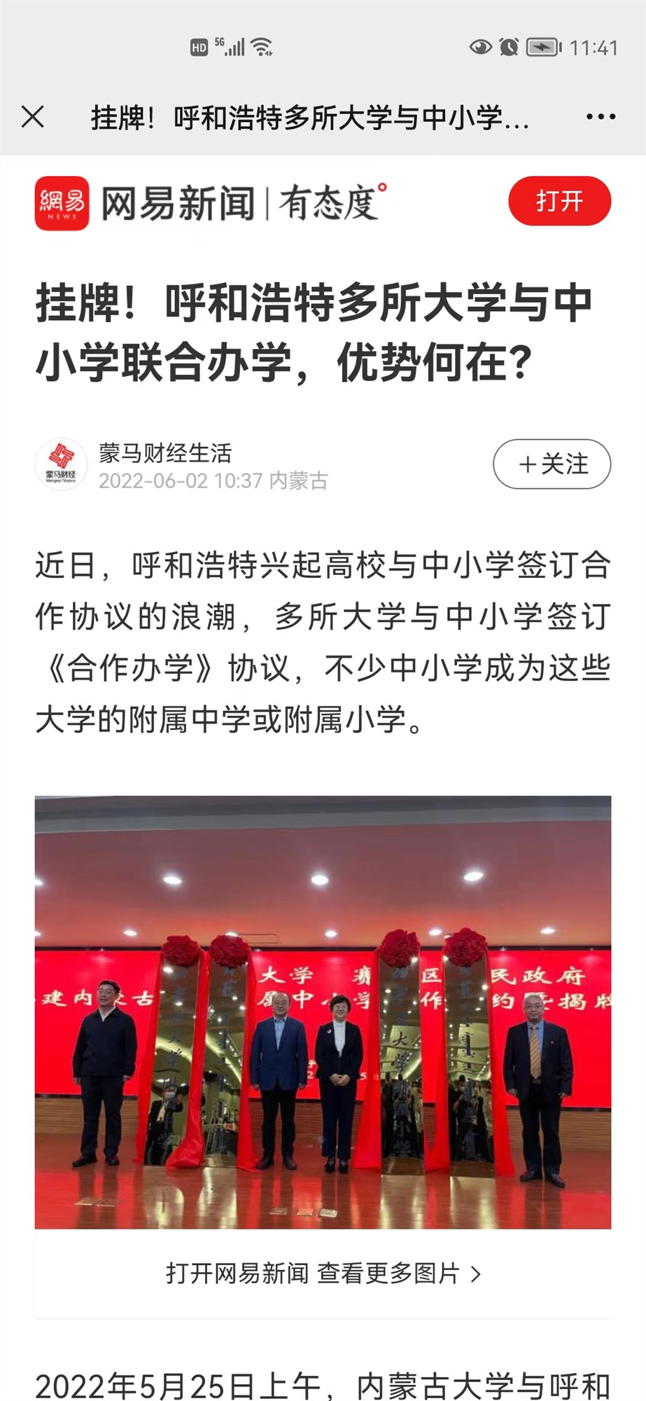 多家知名新闻媒体广泛关注报道我校与新城区人民政府举行全面战略合作签约暨内蒙古工业大学附属中小学幼儿园揭牌仪式