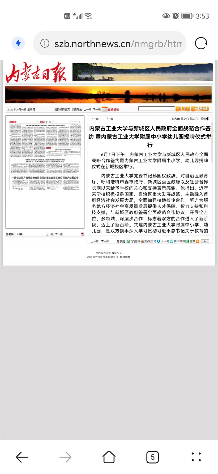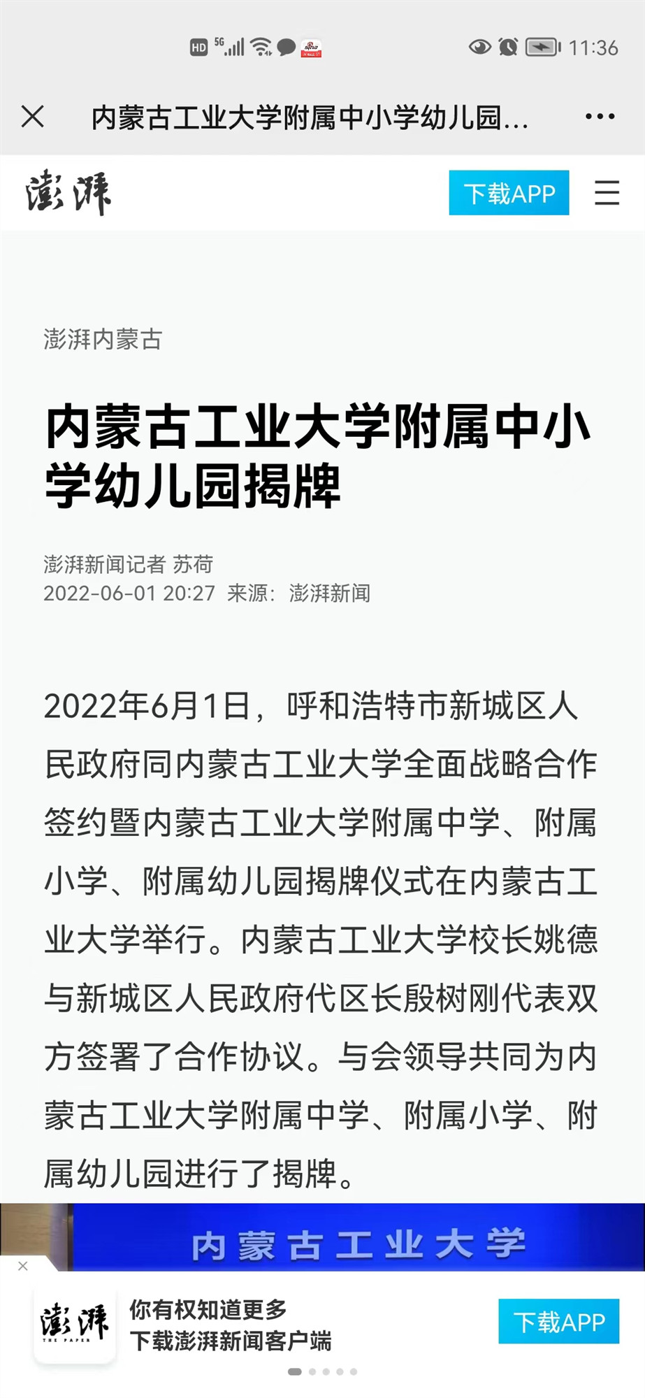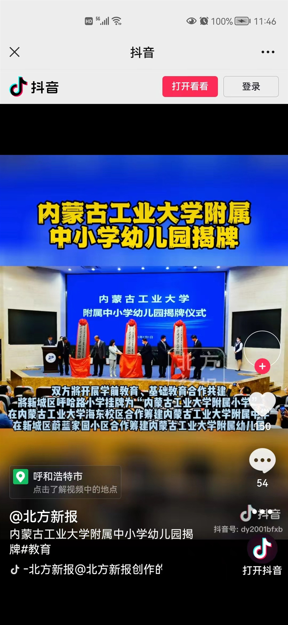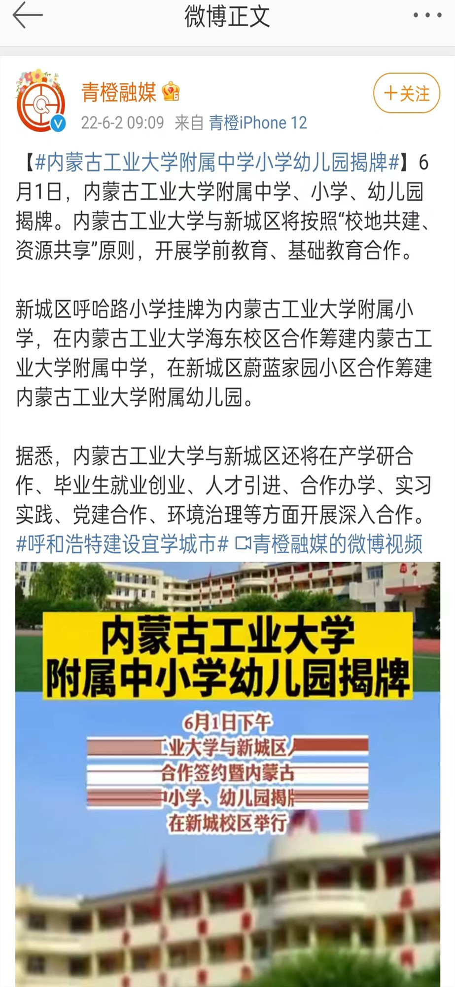 多家知名新闻媒体广泛关注报道我校与新城区人民政府举行全面战略合作签约暨内蒙古工业大学附属中小学幼儿园揭牌仪式