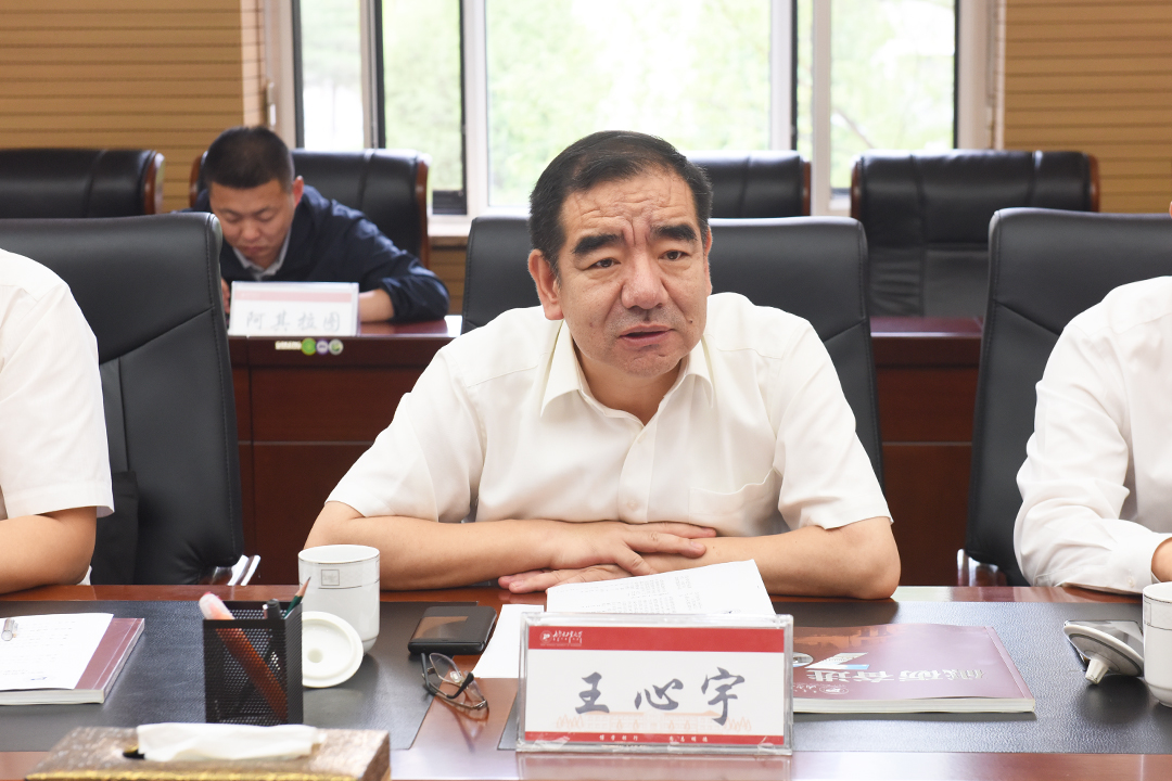 姚德代表学校向王心宇副市长一行表示热烈欢迎,并简要介绍了学校的办学历程、学科专业建设、人才培养、师资队伍等基本情况。他表示,我校与鄂尔多斯市政府、驻地高校、相关企业具有长期的合作经验,建立了深厚的友谊。希望各方进一步发挥特色优势,不断拓展合作领域,深化合作成果,共同为自治区经济社会发展贡献智慧和力量。