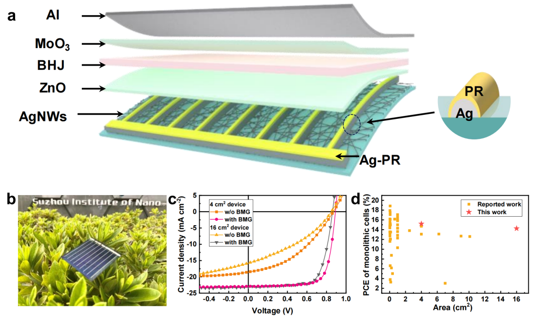 图2 大面积柔性有机光伏电池的结构与性能