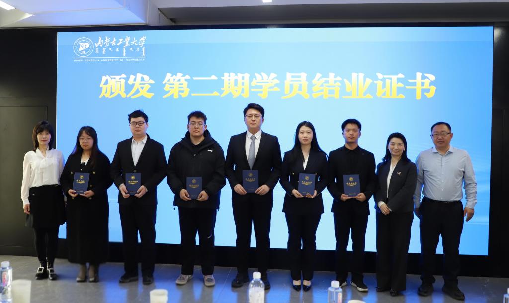 会议宣读内蒙古工业大学第二期“创程-创新创业管理”微专业结业名单及优秀学员名单,与会领导与老师为结业学员及优秀学员颁发证书优秀团队及学员代表分享跨学科学习、实战创新的成长感悟