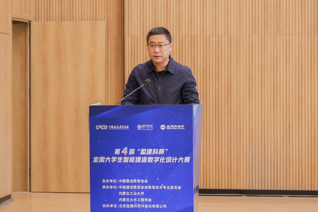 12月6日7日由中国建设教育协会主办,我校和中国建设教育协会教育技术专业委员会、内蒙古土木工程学会承办,北京盈建科软件股份有限公司协办第四届“盈建科杯”全国大学生智能建造数字化设计大赛总决赛在新城校区圆满举行。党委委员、副校长白朴存北京盈建科软件股份有限公司副总经理李保盛中国建设教育协会助理理事长、副秘书长胡晓光出席开幕式并致辞。来自相关高校、企业、协会等单位负责同志,评审专家师生代表通过线下主会场与线上图片直播相结合的方式参加土木工程学院院长时金娜主持开幕式。