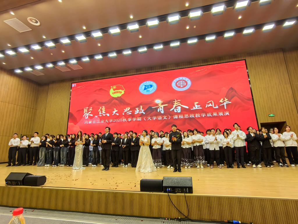 12月21日,由通识教育学院主办的“聚焦大思政 青春正风华”《大学语文》课程思政教学成果展演活动在新城校区科创大厦圆满举行。此次展演紧扣立德树人根本任务,以《大学语文》课程为载体,通过诗词朗诵、古调吟唱等美育形式,让广大师生在沉浸式的审美体验中汲取文化养分、厚植家国情怀。内蒙古诗词学会常务理事、学会教育工作委员会副主任,内蒙古工业大学关工委副主任王鹏程教授出席,通识教育学院领导班子、文化素质教研室教师及校团委学生会代表参加活动。