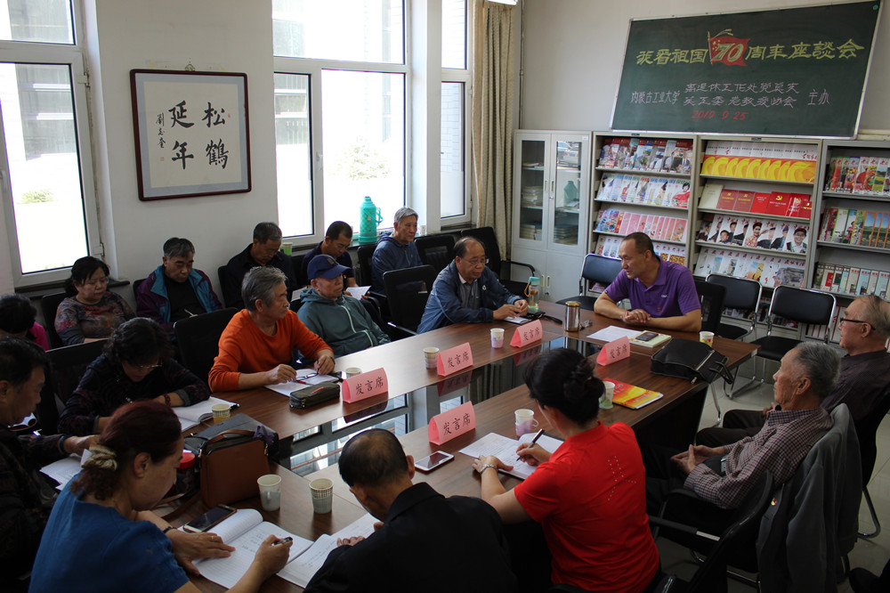 我校老同志开展“我看新中国成立70周年新成就”专题座谈会9月25日下午,离退休人员工作处党总支、关工委、老教授协会共同举办“我看新中国成立70周年新成就”专题座谈会。我校离休干部、退休校级老领导,关工委、老教授协会成员...
