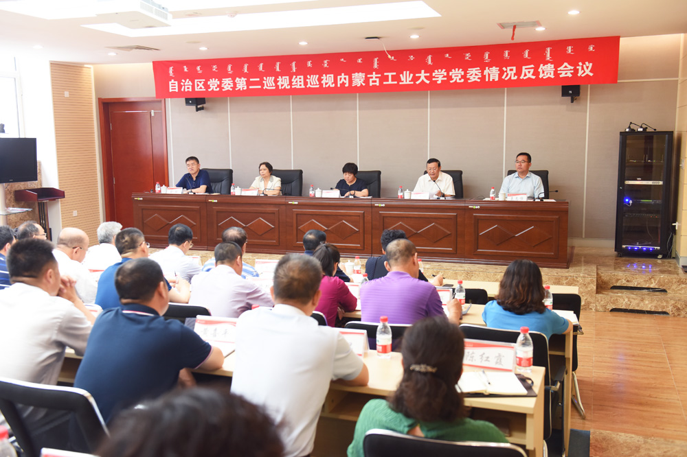 自治区党委第二巡视组向内蒙古工业大学党委反馈巡视情况根据自治区党委巡视工作领导小组安排,2018年7月3日,自治区党委第二巡视组向内蒙古工业大学党委反馈巡视情况。自治区纪委常委、监委委员,党委巡视工作领导小组成员、...