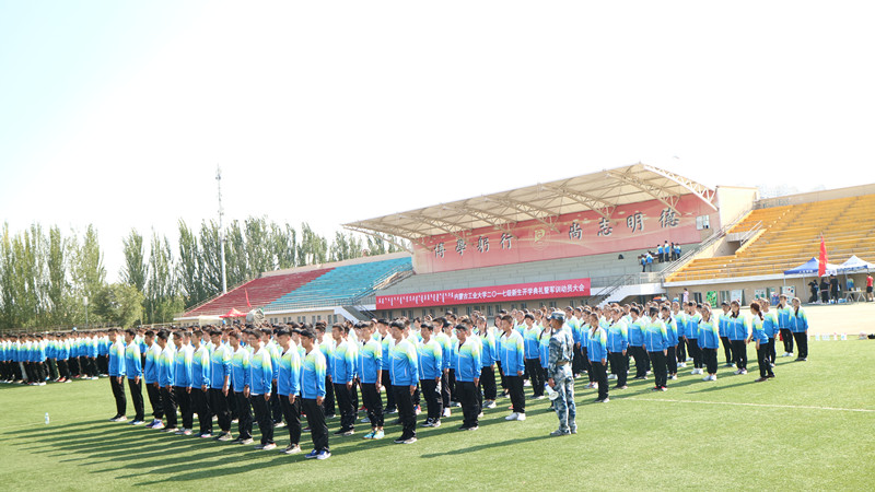 2017级新生军训总结表彰大会举行9月14日下午、15日上午,我校2017级新生军训总结表彰大会分别在金川校区体育场和新城校区体育场举行。中国人民解放军某部副政委武爱军、职教办副主任张红艳,我校领导金...