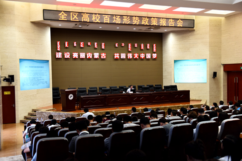 “建设亮丽内蒙古•共圆伟大中国梦”全区高校百场形势政策报告会在我校举行6月21日下午,内蒙古自治区党委党史研究室副主任姜爱军应学校邀请在我校教研楼第一报告厅作“守望相助,亮丽北疆——内蒙古自治区70年发展历程简介”主题报告。这是我校...