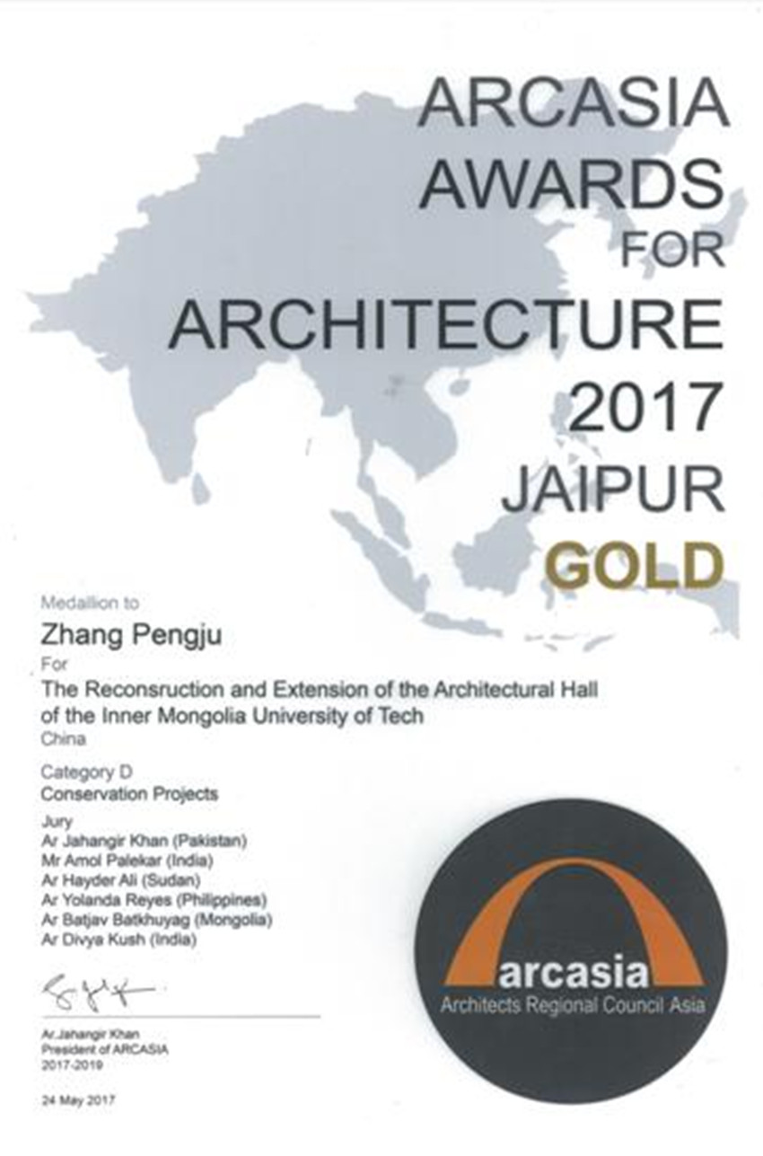 建筑馆改造与扩建项目获19届亚洲建协建筑奖金奖日前,第19届亚洲建筑师协会建筑奖在印度斋浦尔举行颁奖典礼。我校建筑学院张鹏举教授主持的“内蒙古工业大学建筑馆改造与扩建”项目,赢得赛事评委青睐,荣获保护项目...