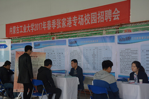 我校举办张家港就业工作站专场招聘会4月20日下午,“内蒙古工业大学2017年张家港就业工作站”专场招聘会在新城校区学生活动中心举行。本次招聘会由张家港市人才中心组织7家用人单位参会,人才需求涉及我校3...