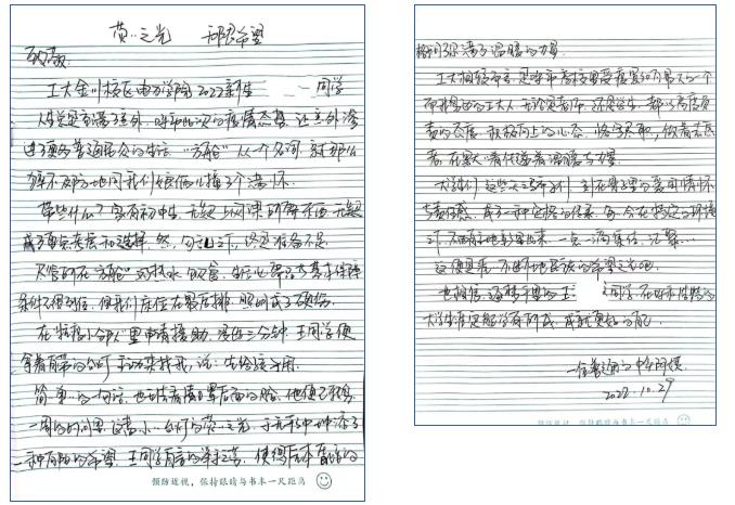 温暖 | 一封来自方舱医院的感谢信工大金川校区电力学院2022级新生王某某同学。 人生总是充满了意外,呼市此次的疫情态势,让意外渗进了更多普通民众的生活。“方舱”从一个名词,就那么猝不及防地同...