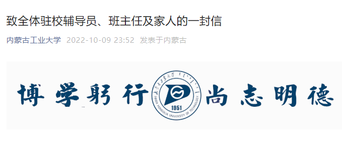 致全体驻校辅导员、班主任及家人的一封信尊敬的驻校辅导员、班主任及家人: 见字如晤,展信安康! 金秋十月,本是秋景如画美好时节,然而突如其来的疫情却让我们处在了疫情防控的危急时刻,为了防止疫情向...