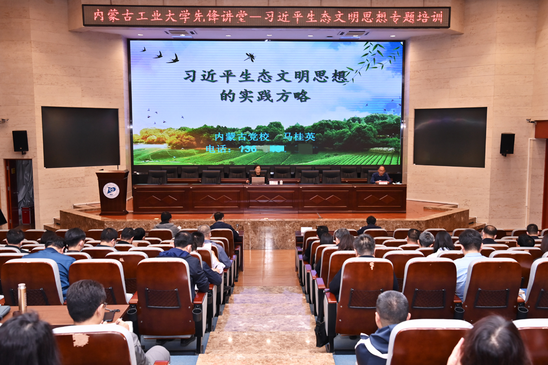 我校举办习近平生态文明思想专题培训9月23日下午,学校在新城校区明德楼第一报告厅举办《先锋讲堂》——习近平生态文明思想专题,内蒙古党校(行政学院)副校长(副院长)马桂英教授作题为“习近平生态文明...