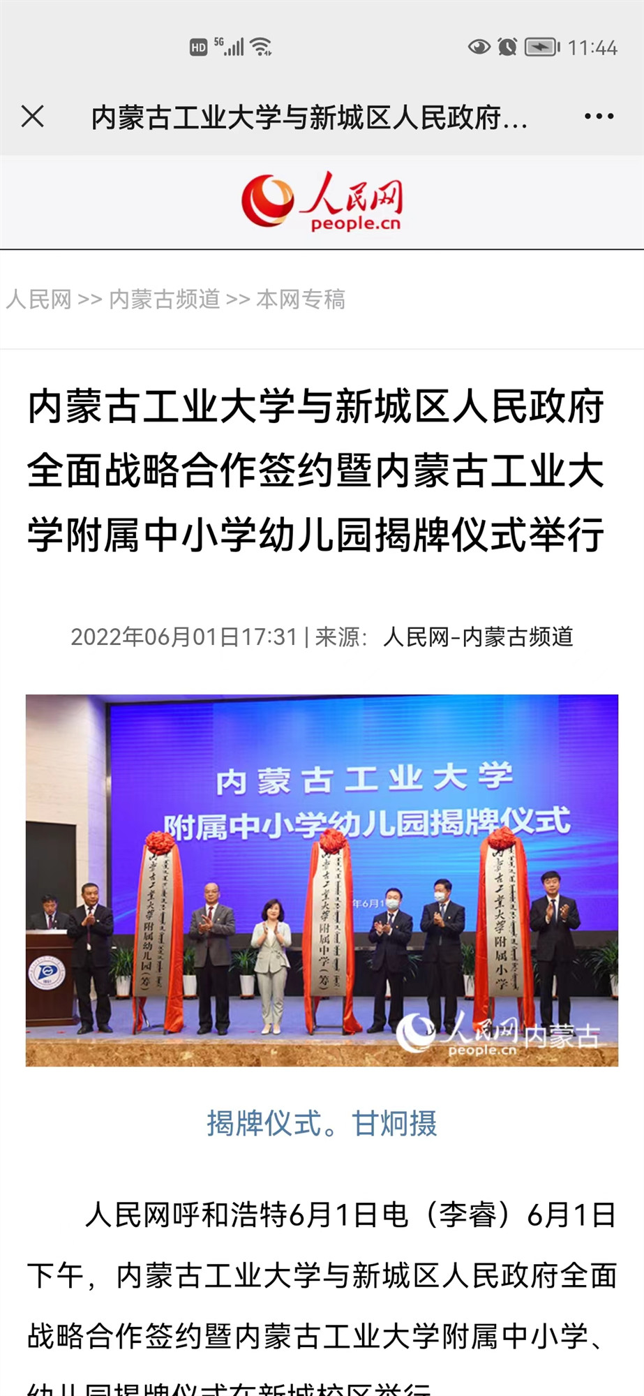 多家知名新闻媒体广泛关注报道我校与新城区人民政府举行全面战略合作签约暨内蒙古工业大学附属中小学幼儿园揭牌仪式6月1日,我校与新城区人民政府隆重举行全面战略合作签约暨内蒙古工业大学附属中小学幼儿园揭牌仪式。期间,我校党委书记孙国权、新城区区委书记赵永刚分别致辞,校地双...
