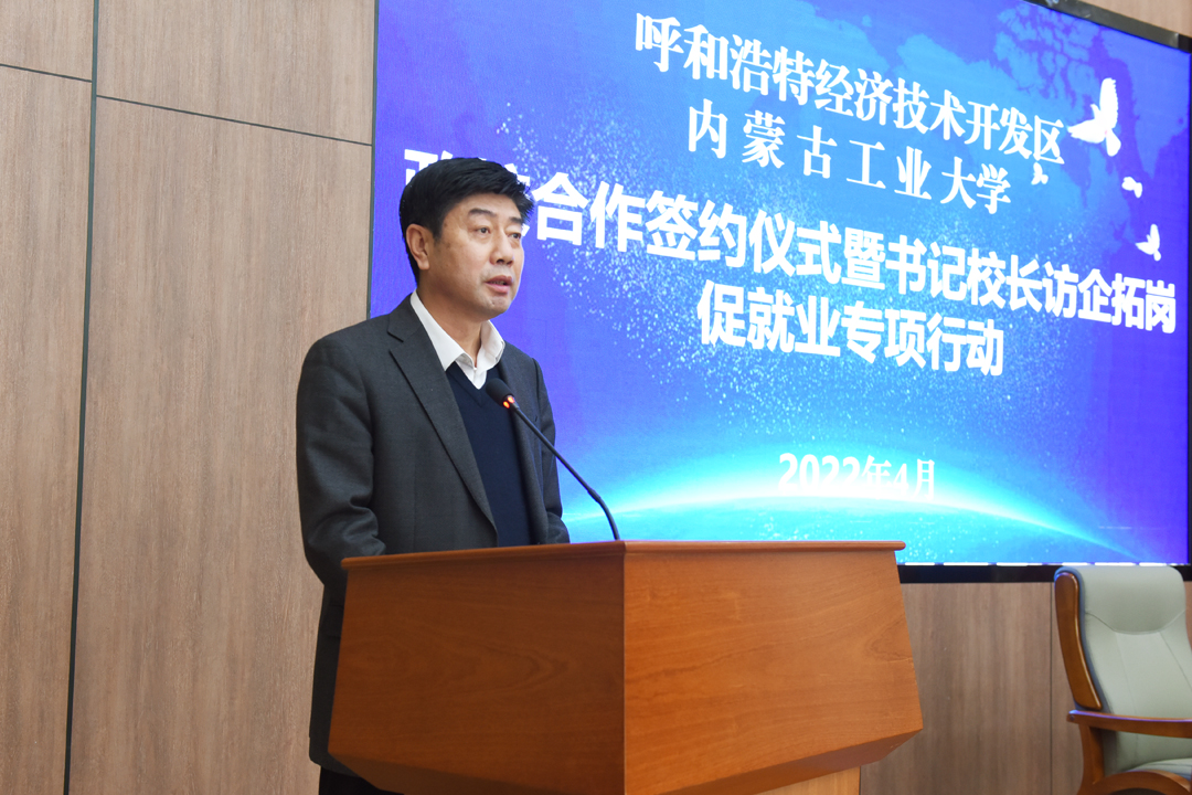 校党委书记孙国权率队走访呼和浩特经济技术开发区开展访企拓岗促就业专项行动 举行政校合作签约仪式为推进书记校长访企拓岗促就业专项行动,进一步搭建校企合作平台,拓宽毕业生就业渠道,4月29日,校党委书记孙国权率队走访呼和浩特经济技术开发区开展访企拓岗促就业专...