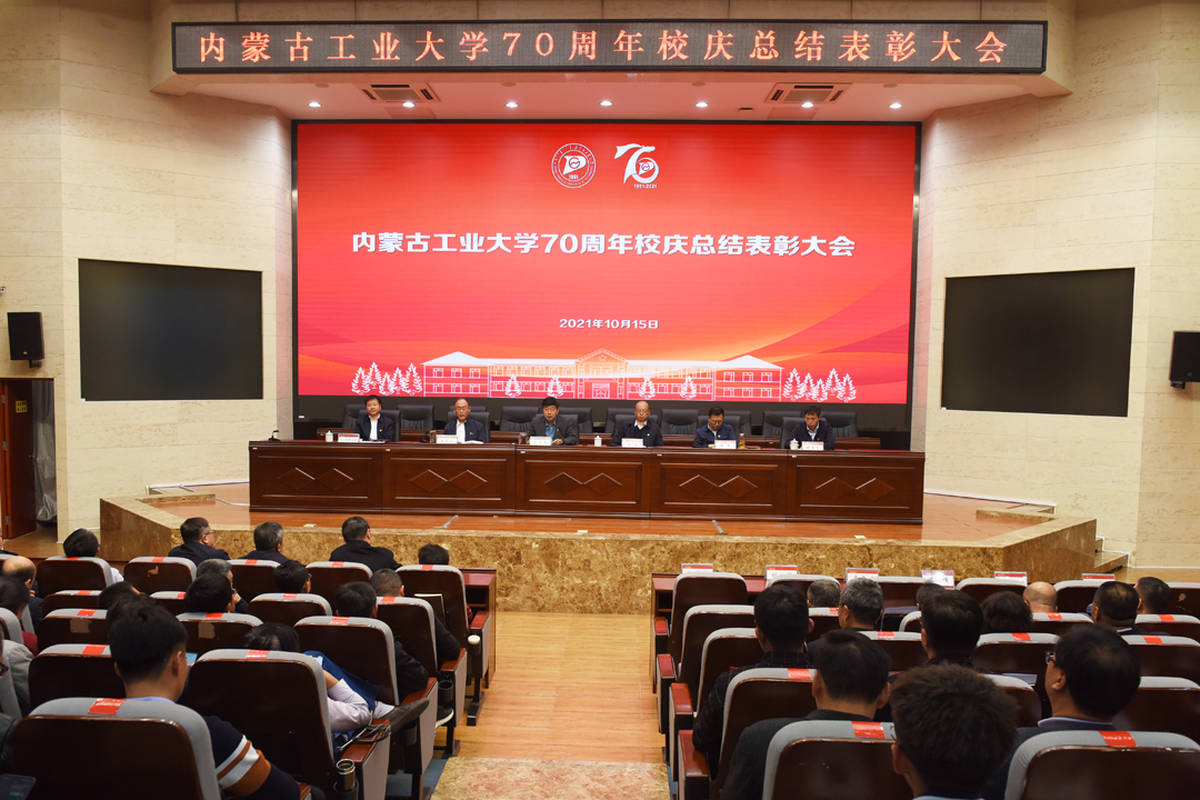 内蒙古工业大学70周年校庆总结表彰大会隆重召开10月15日下午,内蒙古工业大学70周年校庆总结表彰大会在新城校区明德楼第一报告厅隆重召开。全体在校校领导、副处级以上领导干部、受表彰的先进集体和个人、师生代表等3...